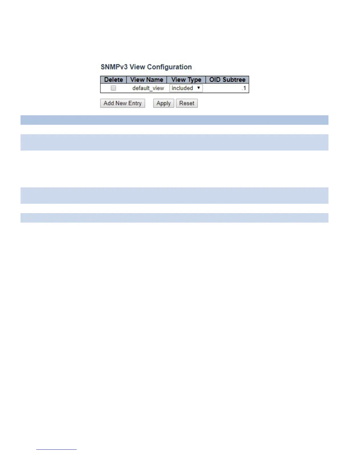Configure SNMPv3 view table on this page. The entry index keys are View Name and OID Subtree.