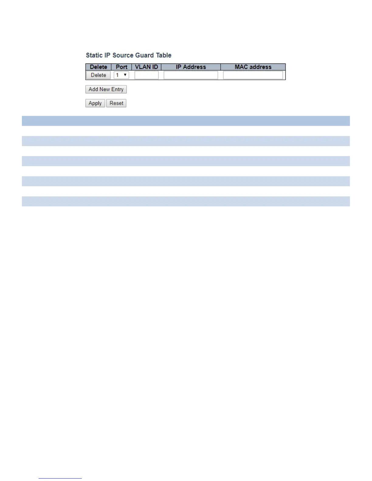 Add New Entry Click to add a new entry to the Static IP Source Guard table.