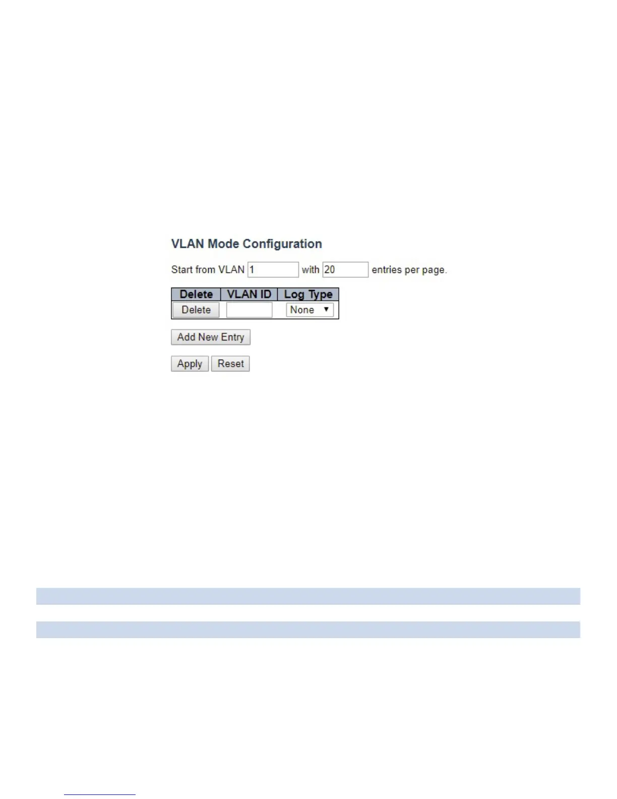 will be inspected on VLAN mode configuration web page. The log type also can be configured on