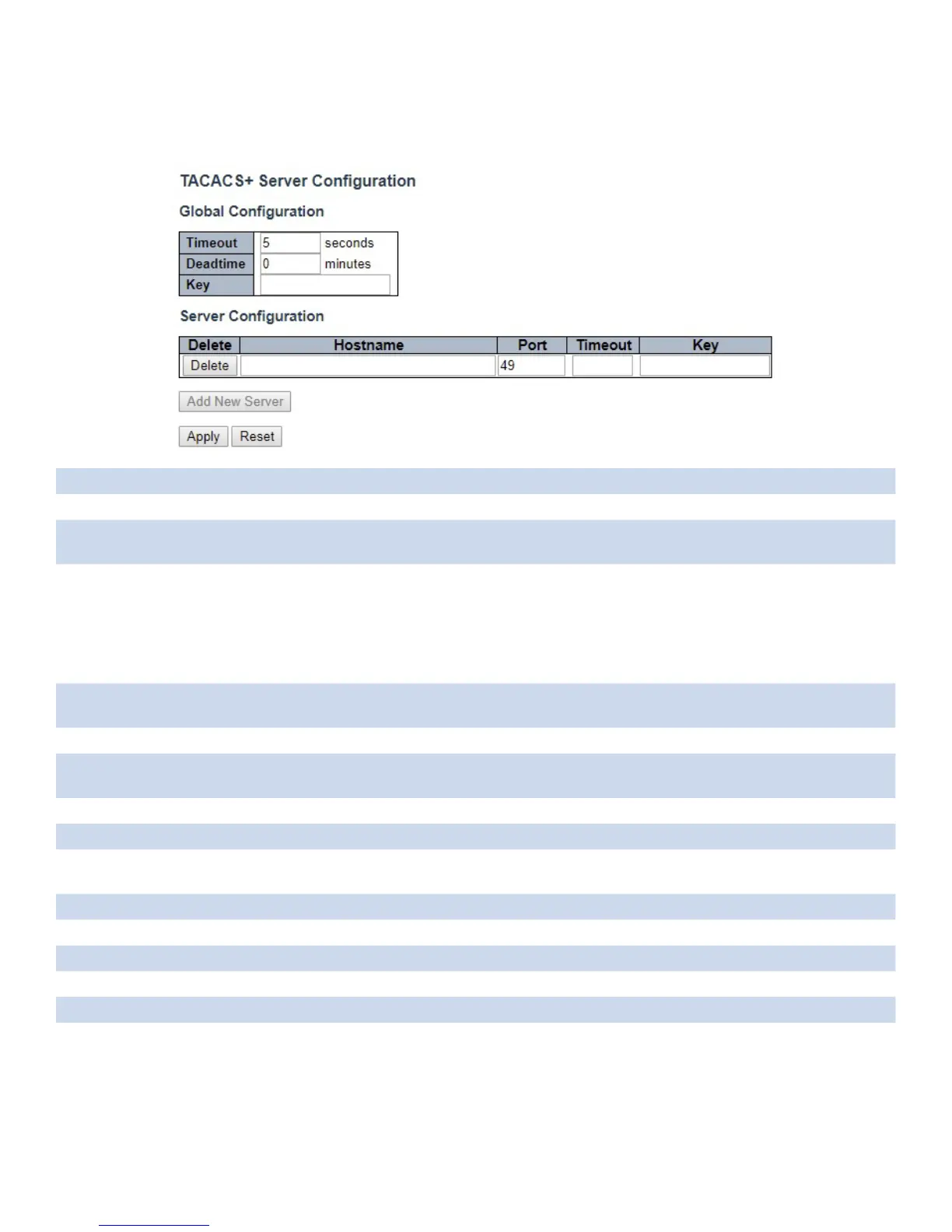 Delete To delete a TACACS+ server entry, check this box. The entry will be deleted during the next