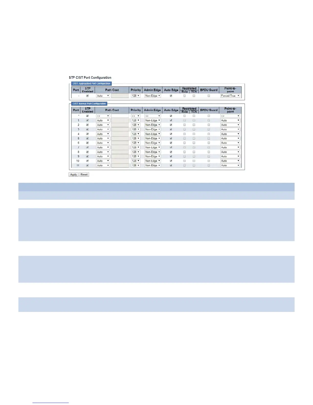 This page allows the user to inspect the current STP CIST port configurations, and possibly change