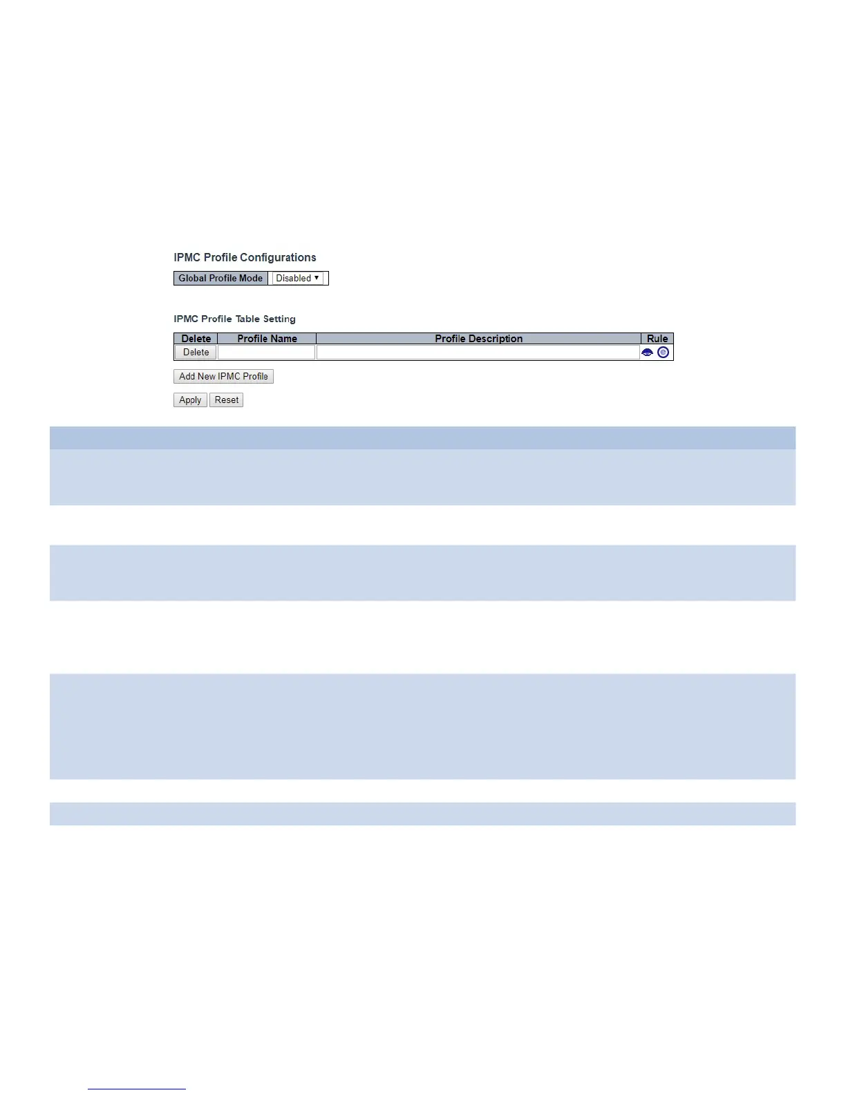 The IPMC profile is used to deploy the access control on IP multicast streams. It is allowed to