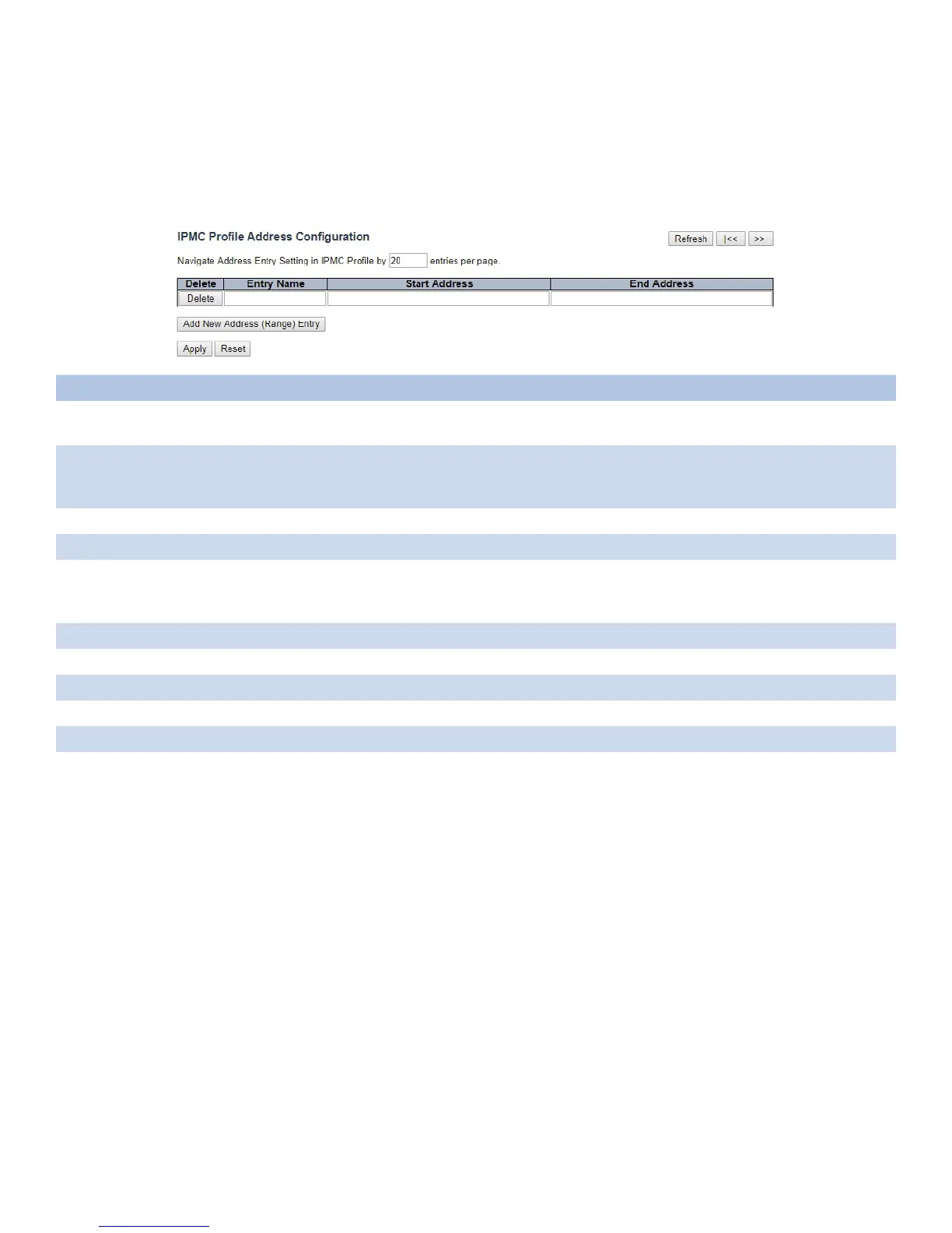 |<< Click to update the table starting from the first entry in the IPMC Profile Address Configuration.