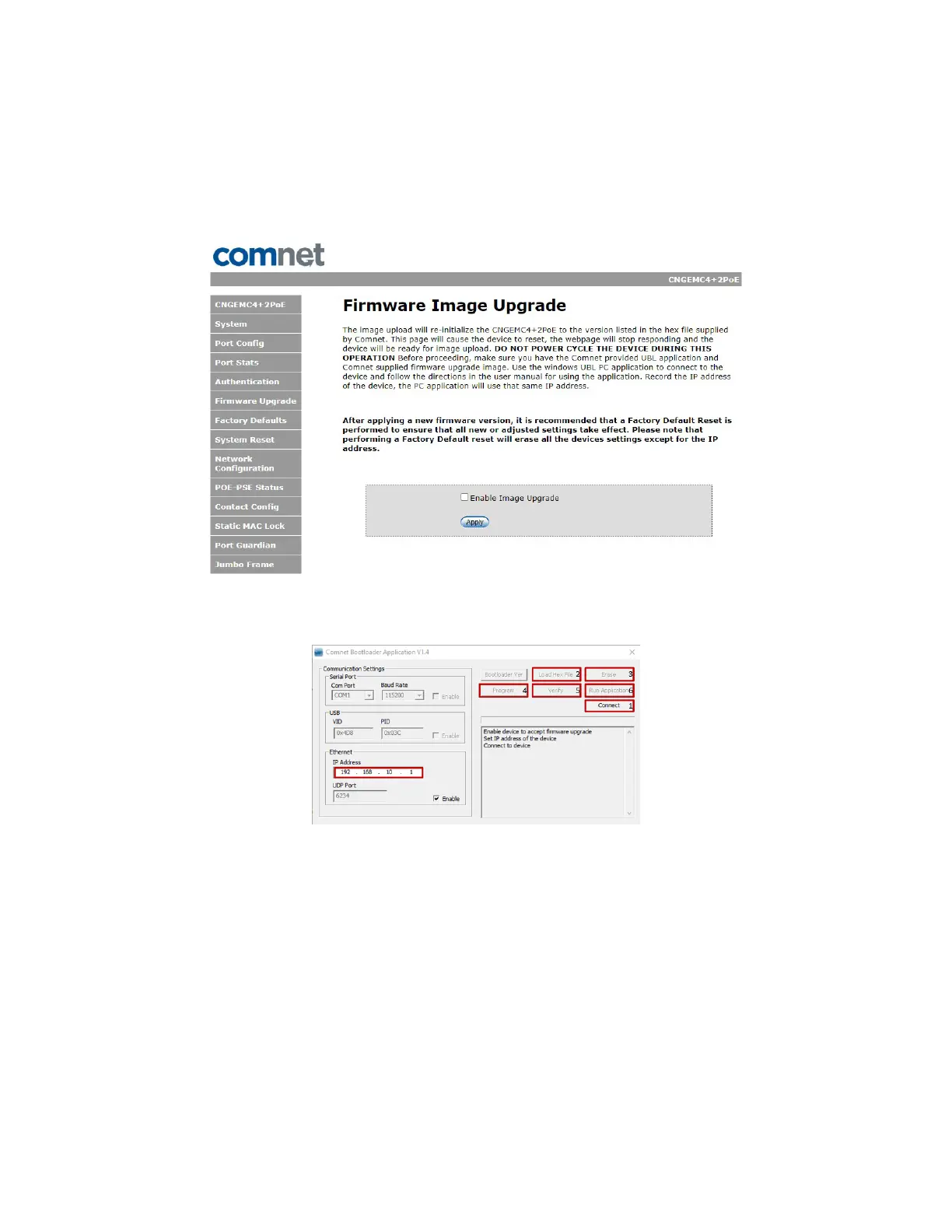 1. Bring up the web server and select the Firmware Upgrade tap. Check the “Enable Image