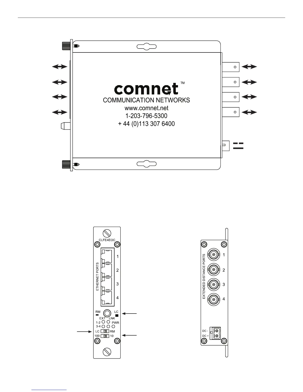 FIGURE 3 – CLFE4EOC FOUR CHANNEL SURFACE OR RACK MOUNT COAX UNIT