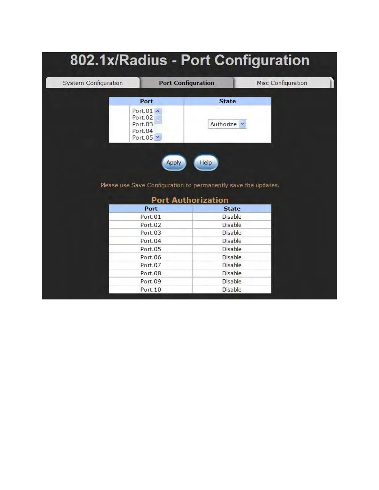 802.1x Per Port Setting interface