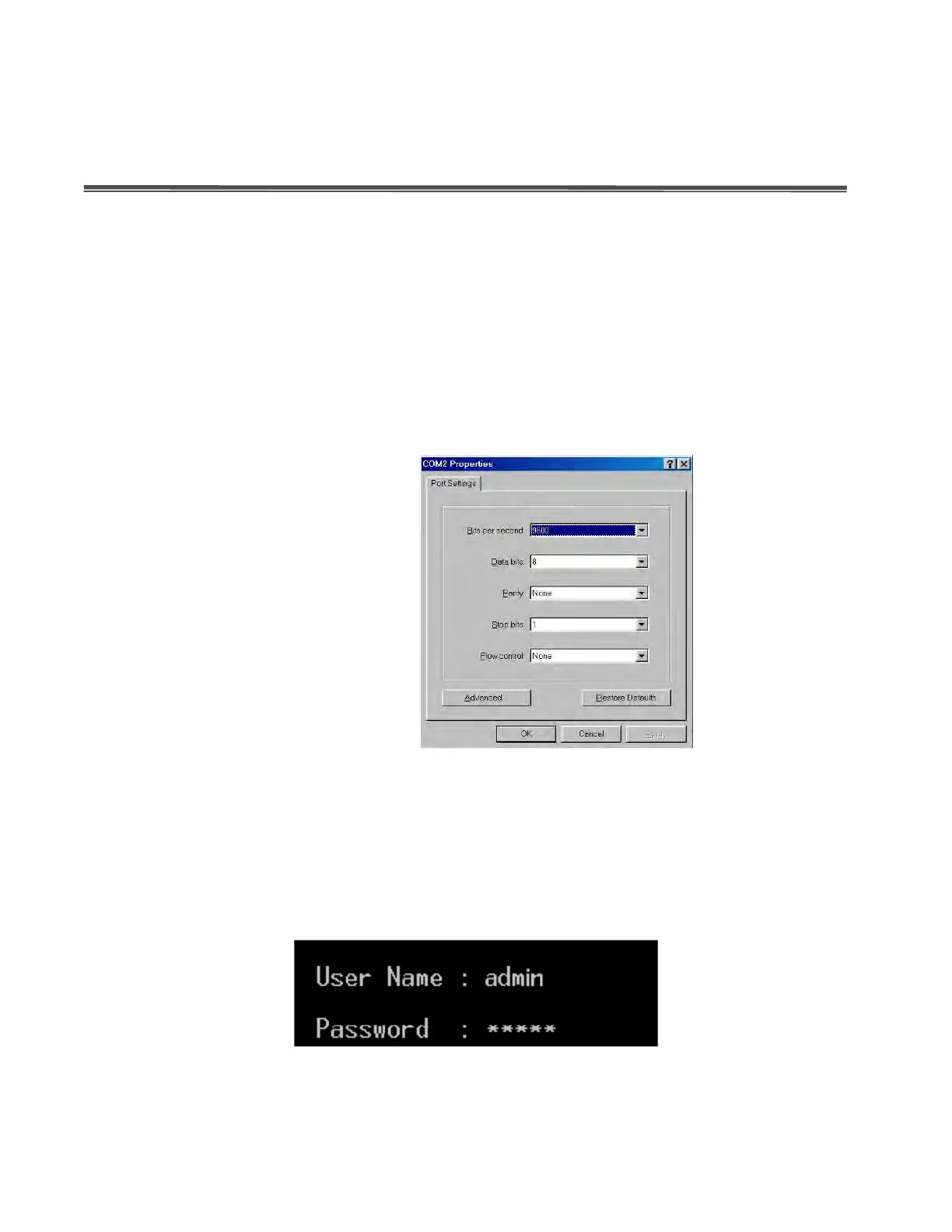 press Enter key to bring forth the login prompt. Key in the ‘admin’ (default value) for both