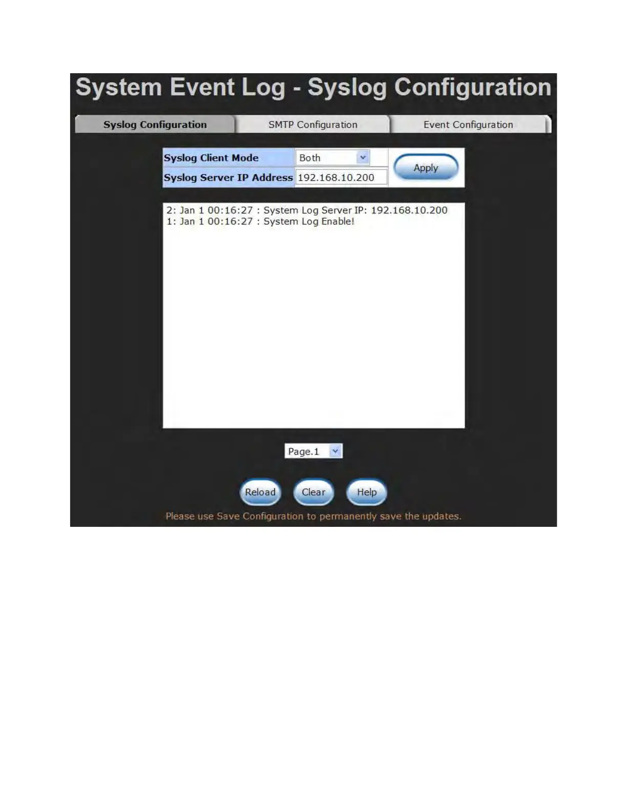 Syslog Configuration interface