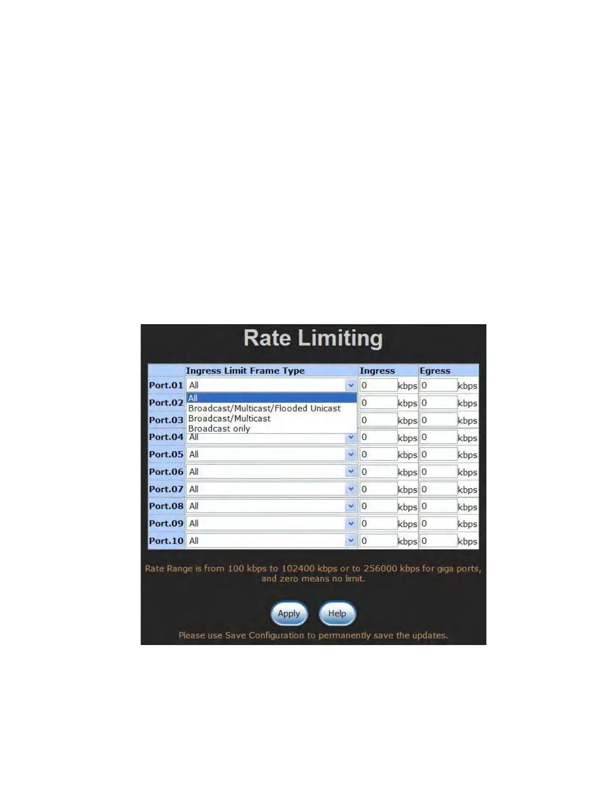Ingress Limit Frame type: select the frame type that wants to filter. There are four