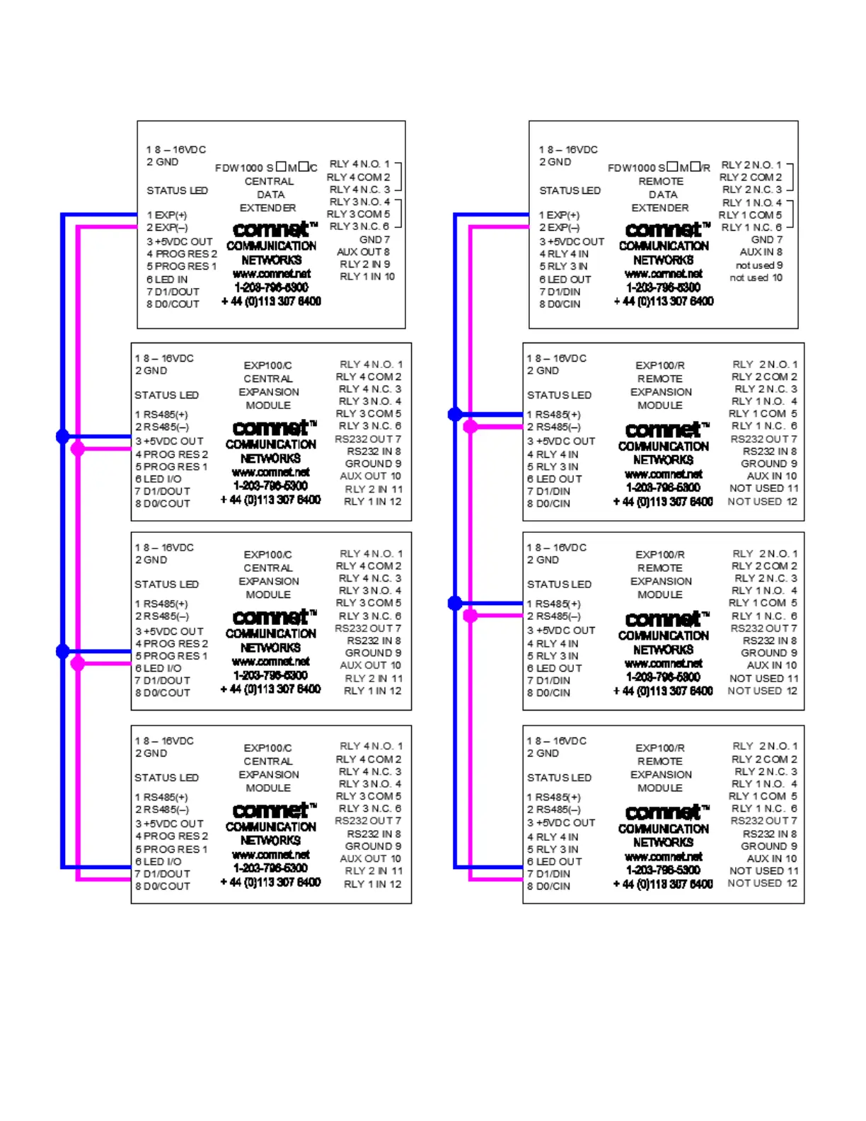 2-wire RS-485 bus wiring for EXP101 expansion modules