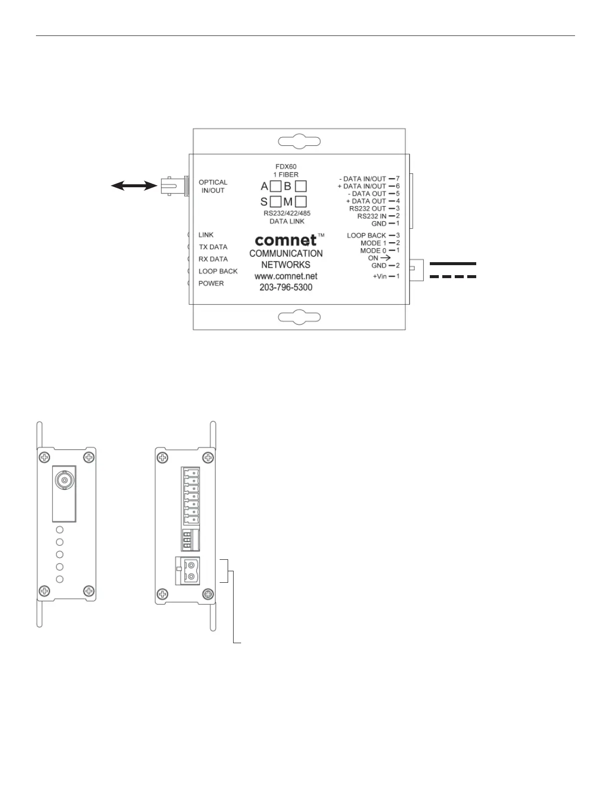 Comnet FDX60M1A-M - FDX60-M 1 Fiber Transceiver Illustrations
