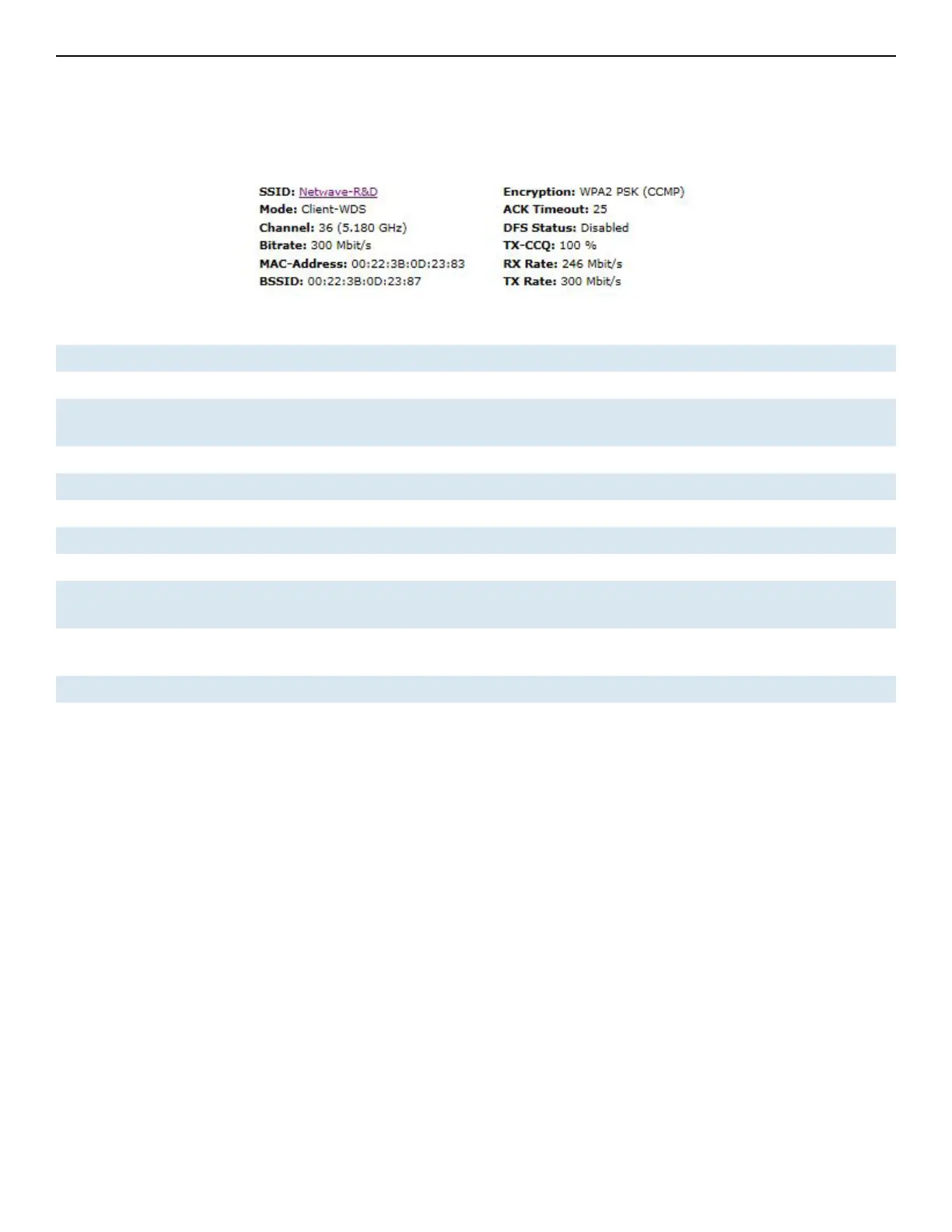 TX-CCQ Displays the transmission quality in %. A higher percentage means a better wireless