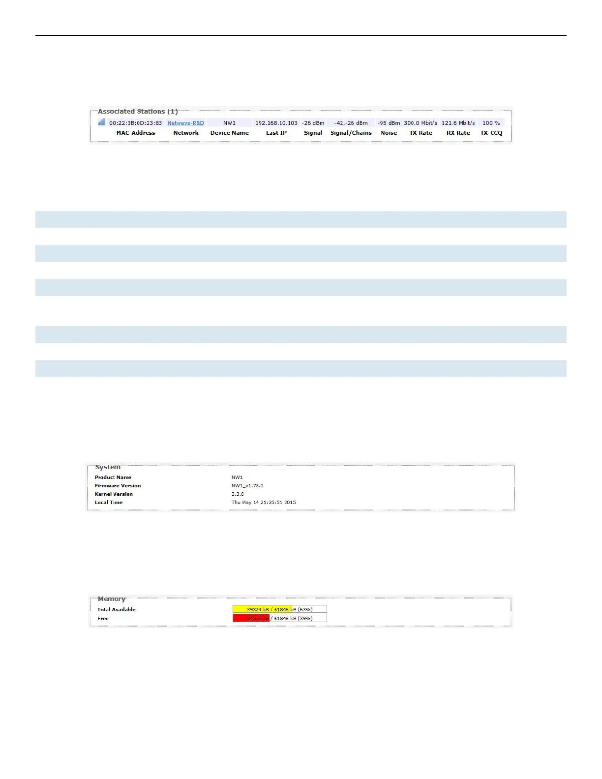 Signal Displays the received signal strength from the Client e.g. -26 dBm.