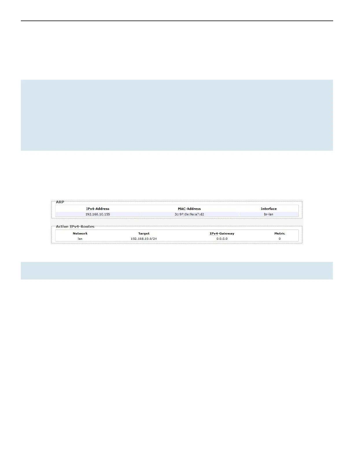 Active IPv4-Routes This table shows the IPv4 gateway and network ID (Target) for each subnet.