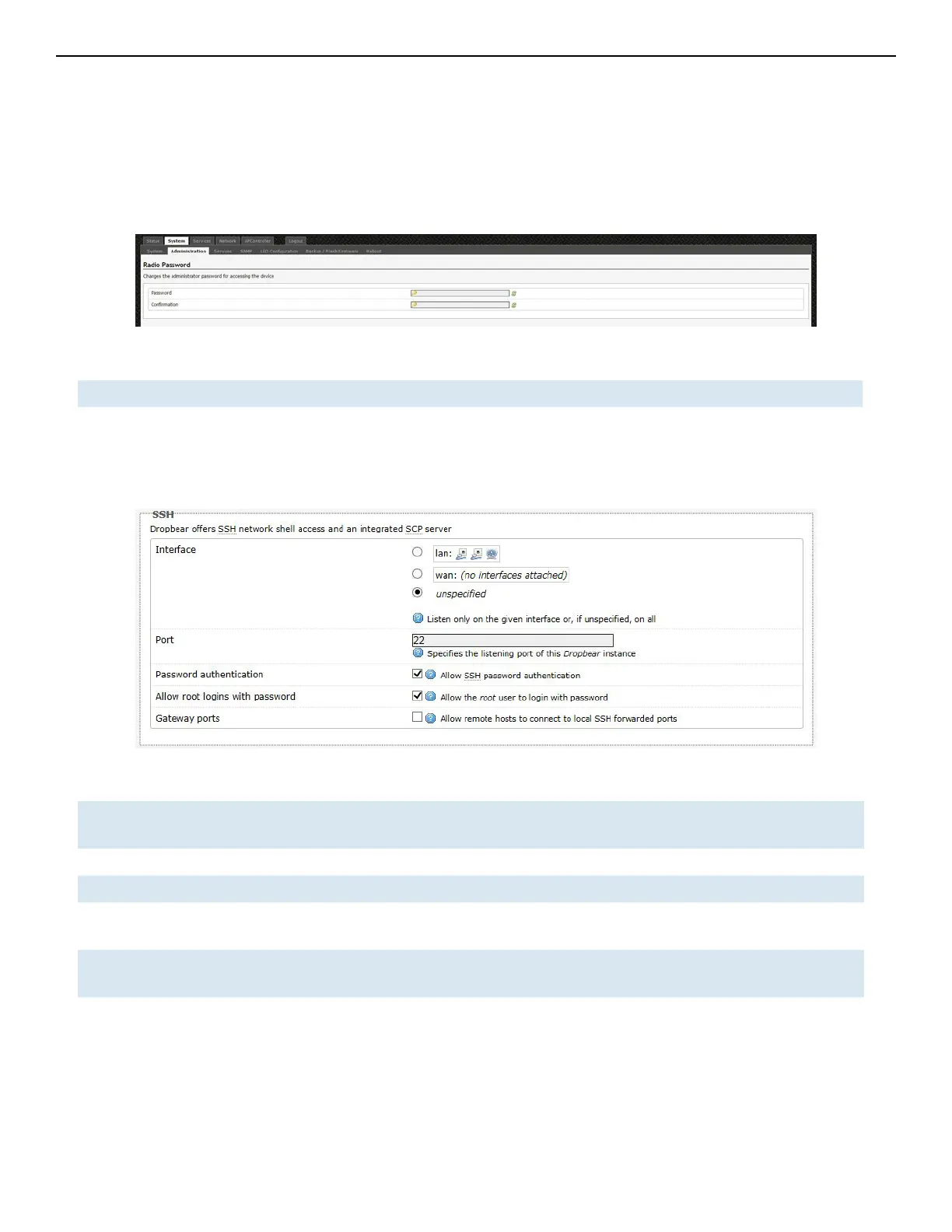 Within the System » Administration page, you can configure the Device Password, SSH, Telnet,