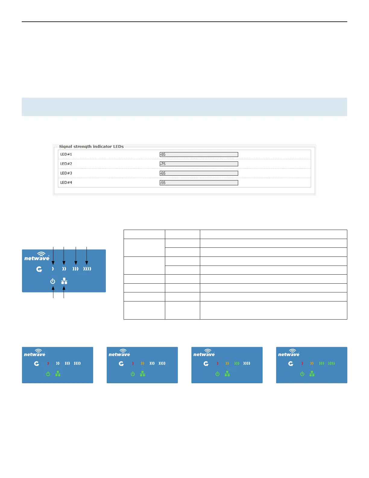 Figure 31: Signal strength indicator LEDs and their default threshold values in dBm.