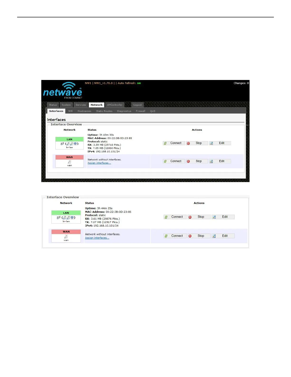 Figure 33: The Interface Overview on the Network » Interfaces page.