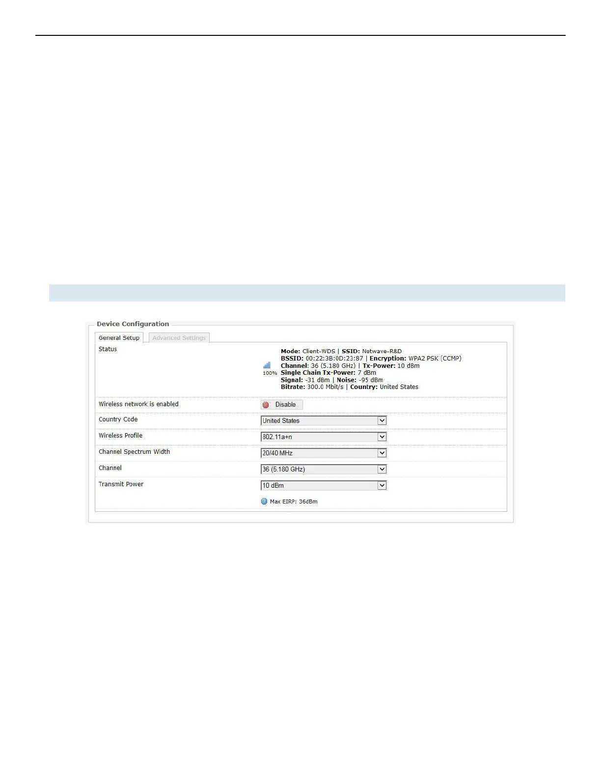 The Device Configuration section consists of the section tabs for General Setup and Advanced