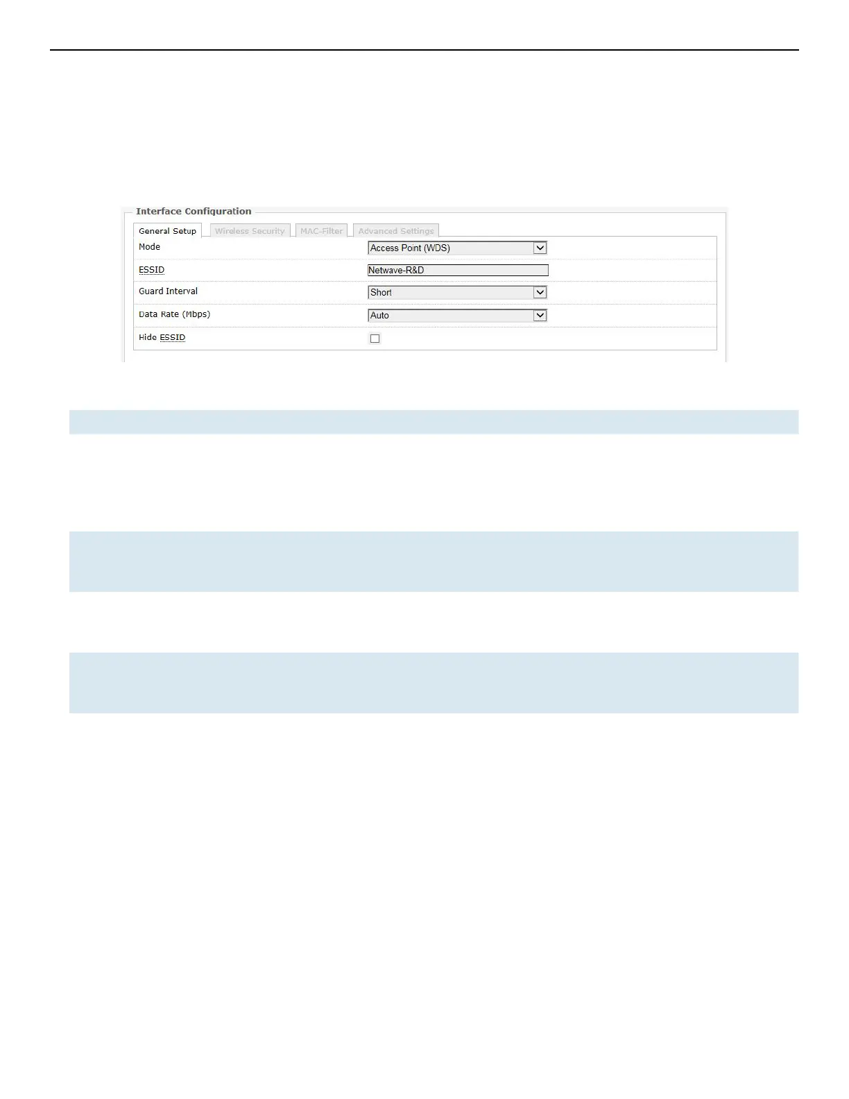 The Interface Configuration section contains the section tabs for General Setup, Wireless Security,