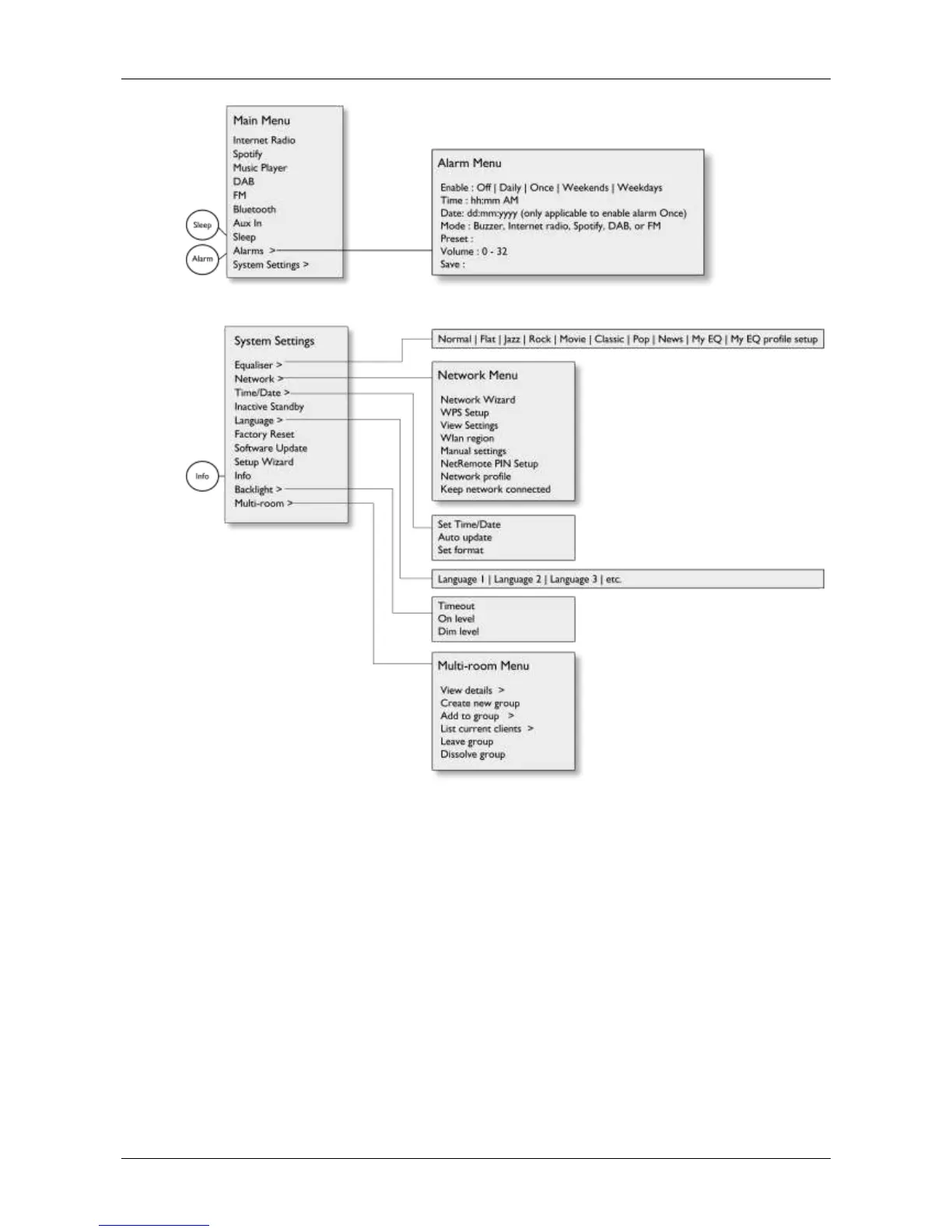 Figure 2 System Settings and Main Menu Structure