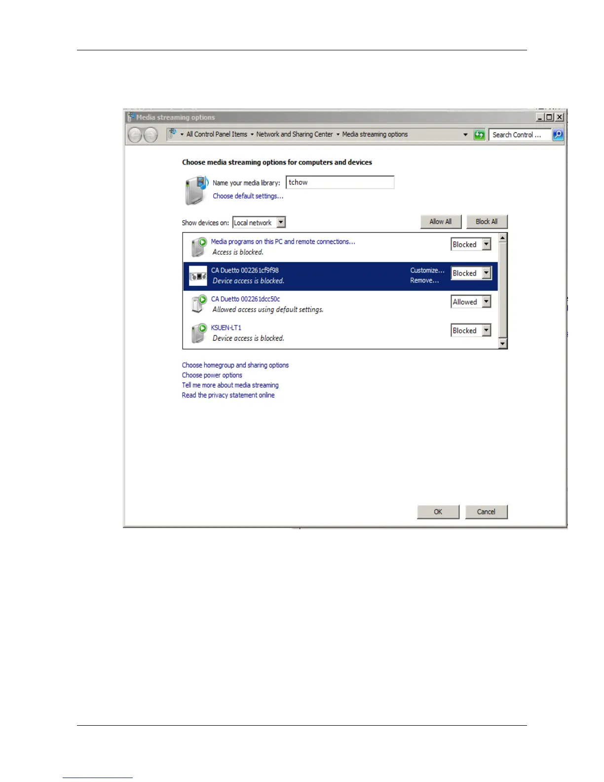 Make sure Solo or Duetto has access to the shared media by selecting it and clicking Allow. You
