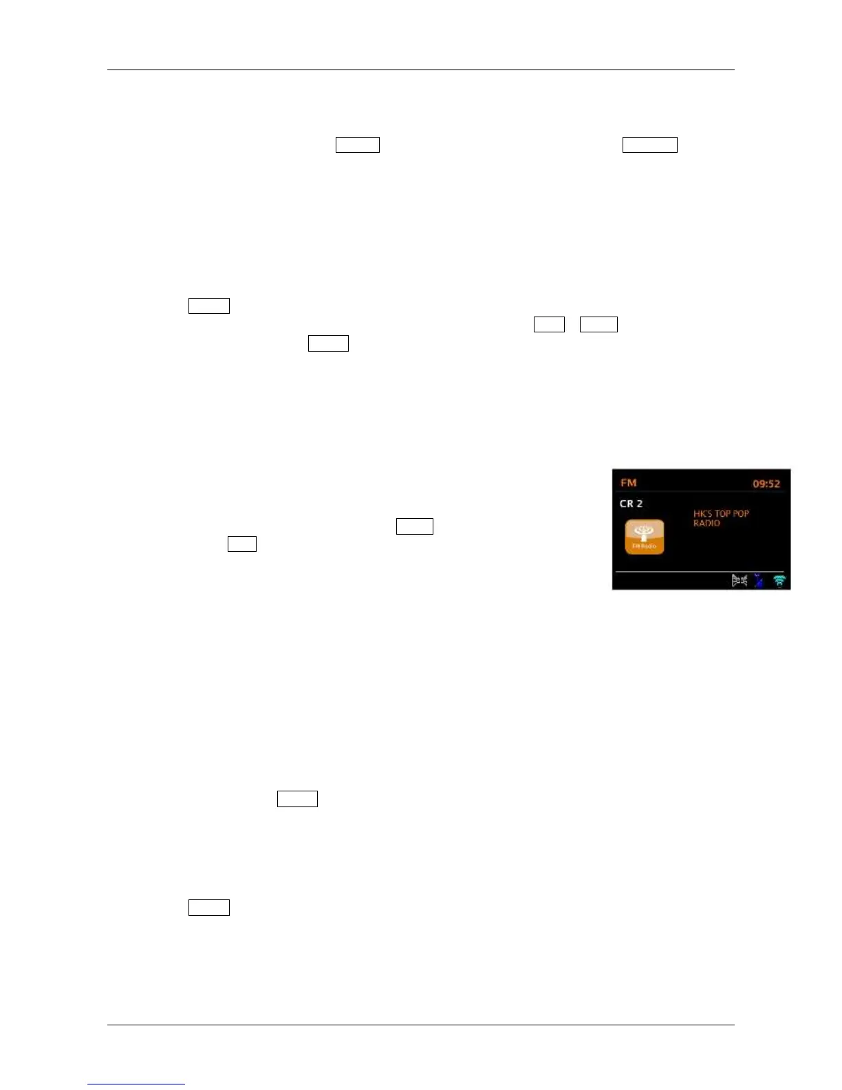 While an FM station is playing, the screen shows one of the two following