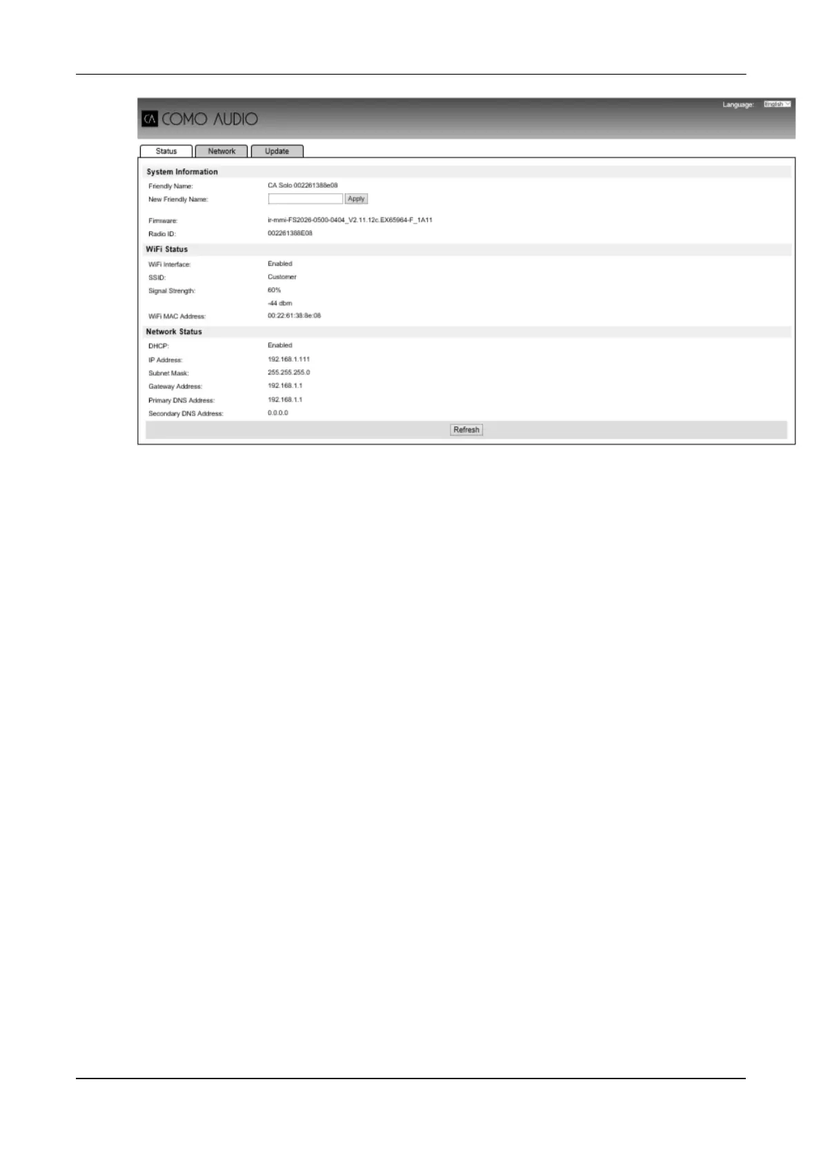 COMO AUDIO Solo - Embedded Web Page Access; Viewing Unit Status and Settings