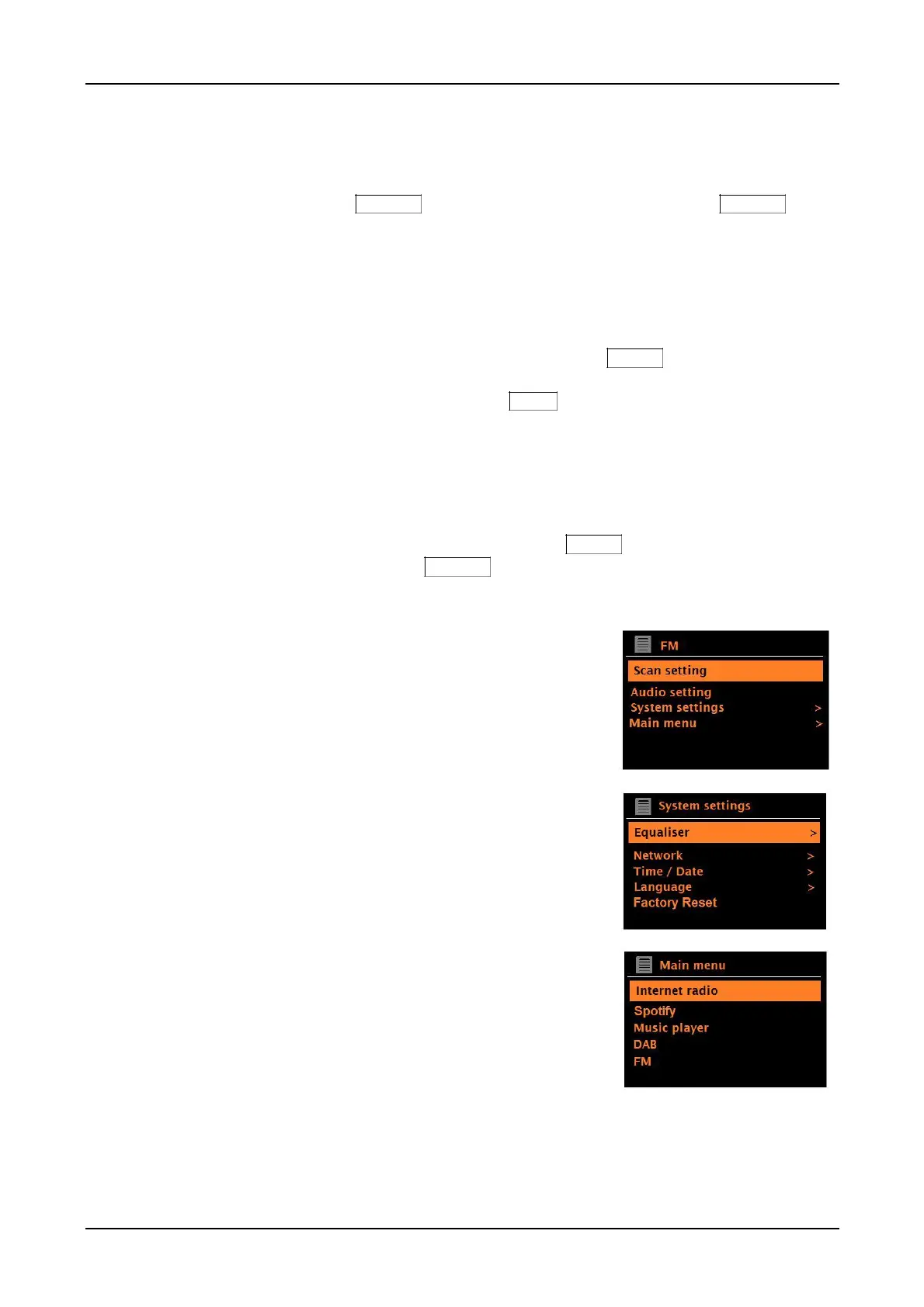 mode. For example, the FM mode menu has two