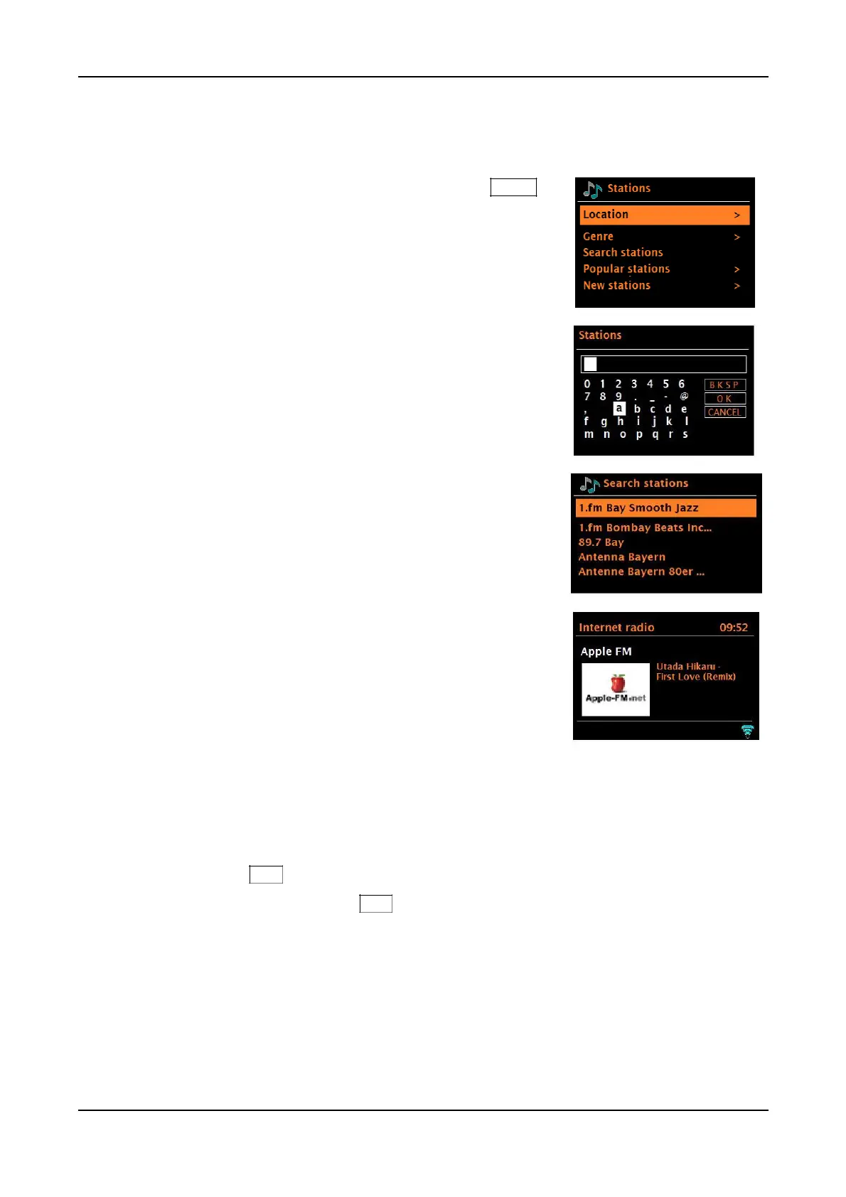 To search, in Internet radio mode, press and hold the Menu