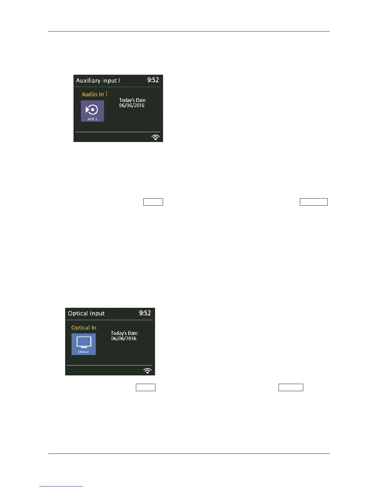 Optical in mode plays audio from an external source having an optical output, such as a TV or CD