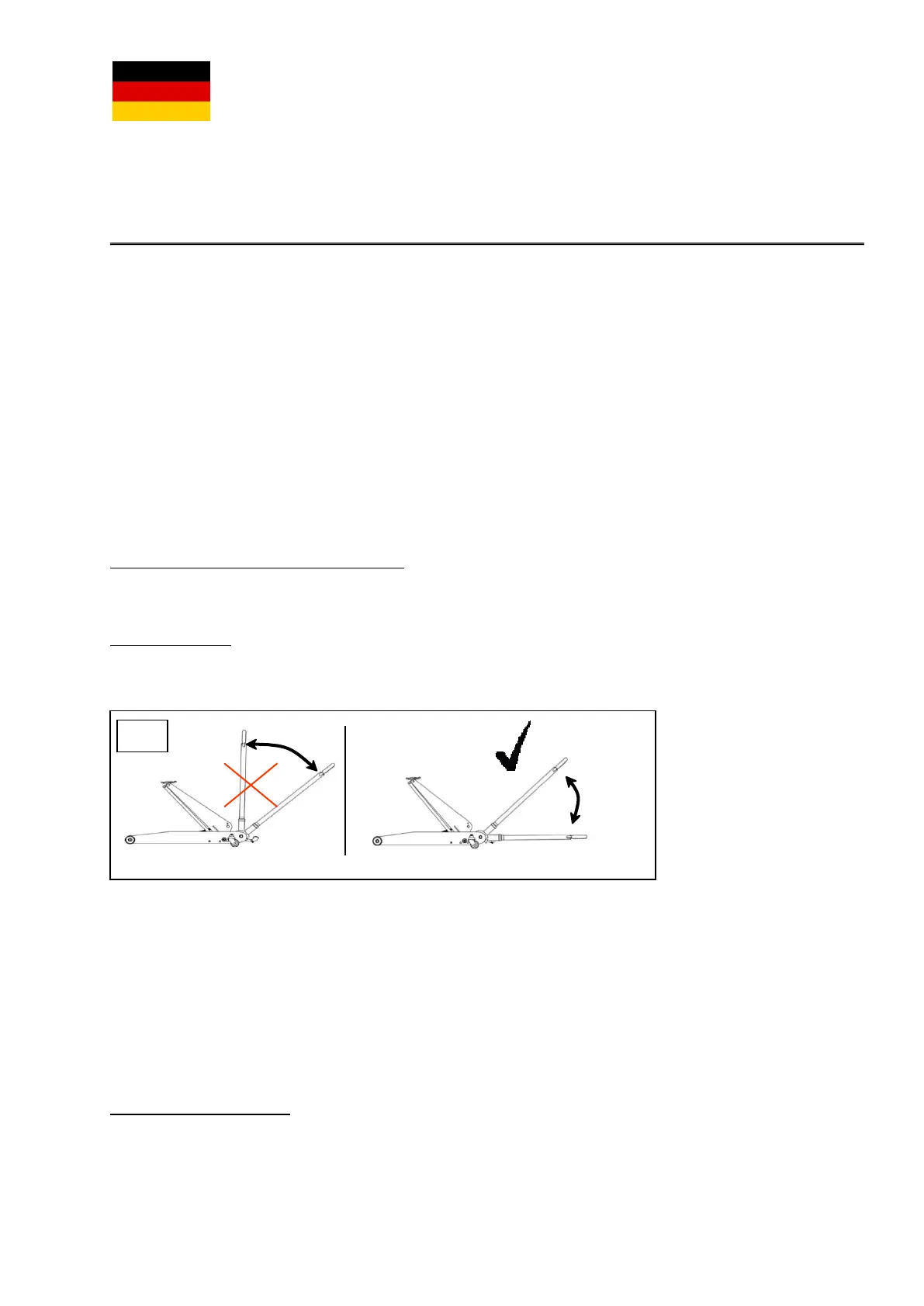 Bemerken Sie bitte, dass Sie darf nur mit dem Pumpenhebel in einem Winkel von 45 Grad und