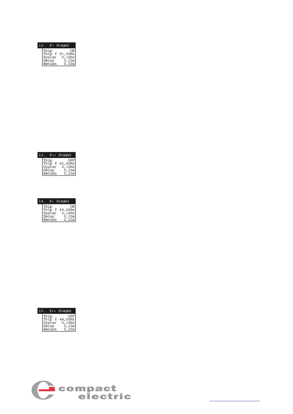 The 15th menu item shown the parameterization of f<< underfrequency stage 2.