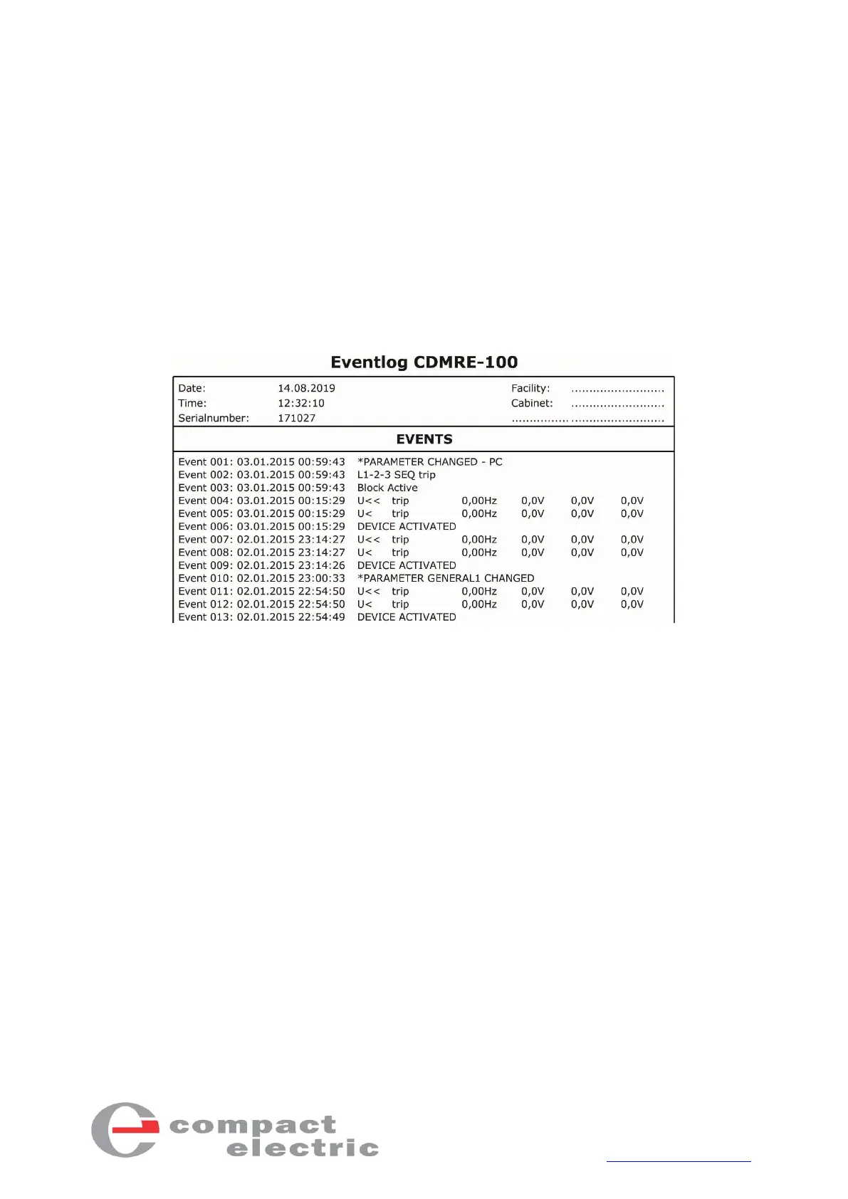 out from CDM-RE-100 by pressing the “Send/Receive"/"Receive event log" button. The last 100