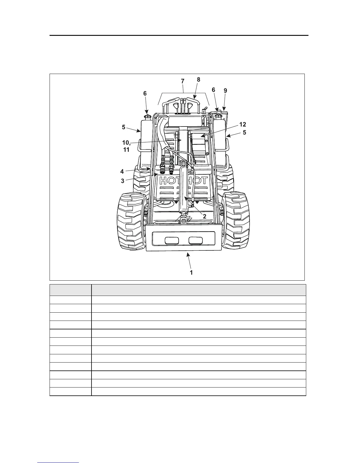 11 Lift cylinder (beneath cylinder lock)