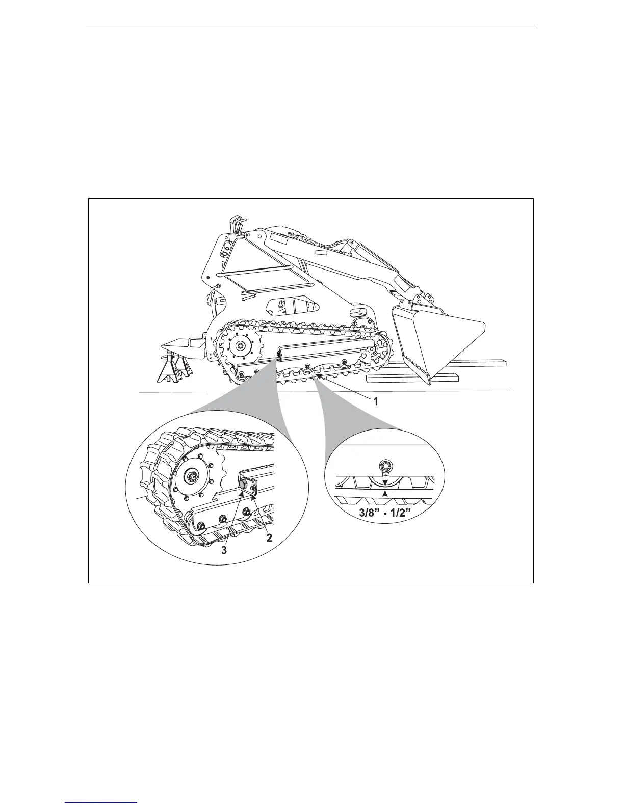 f. With the tracks still off the ground, start the engine and rotate just the track being adjusted