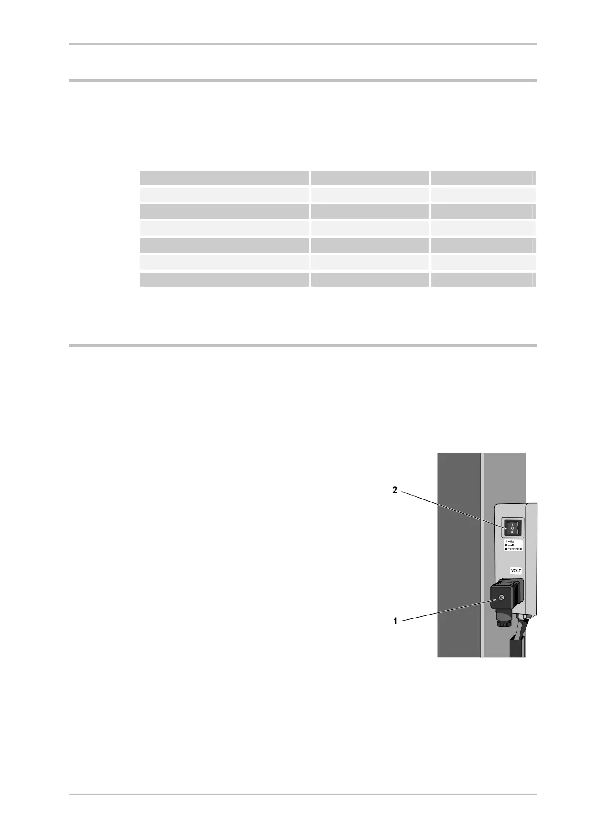 The ON/OFF switch (2) is located to the side of the control cabinet and above the