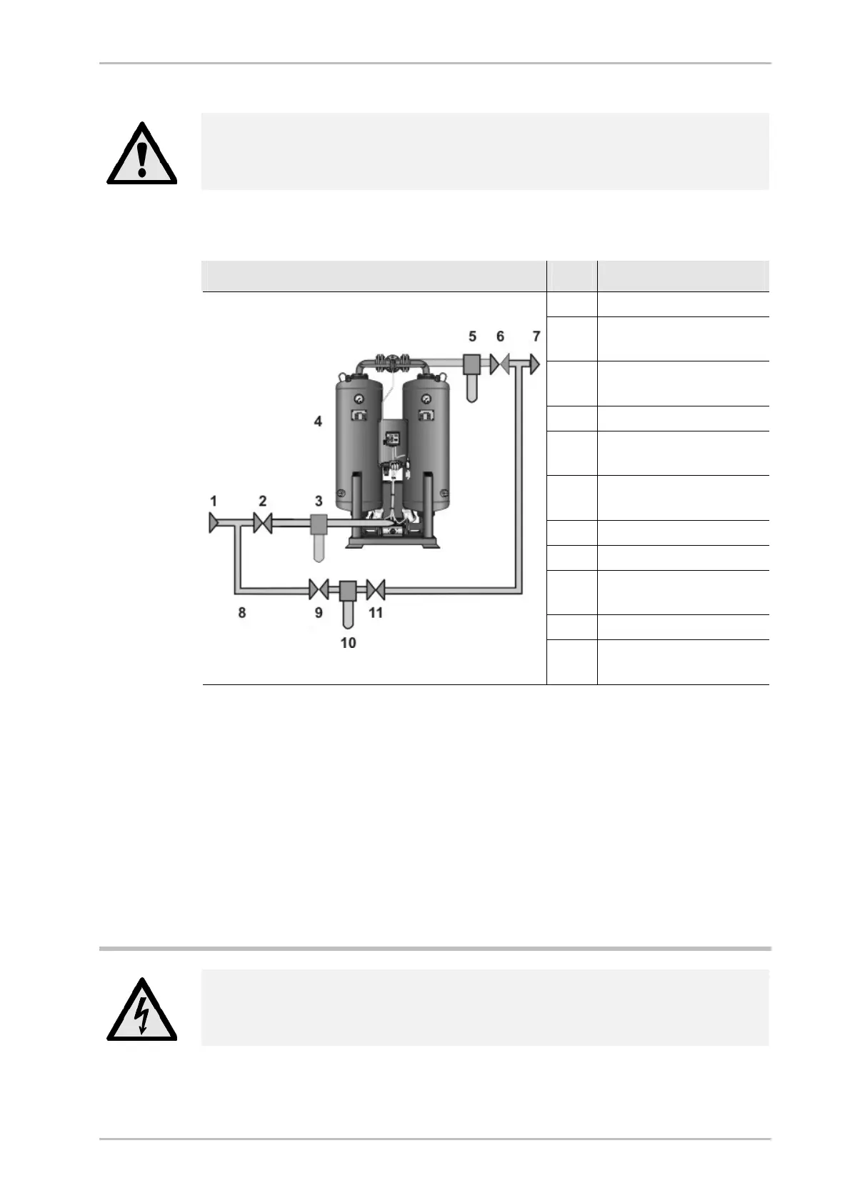 ► One shutdown valve each (2, 6) is to be installed at the compressed air inlet