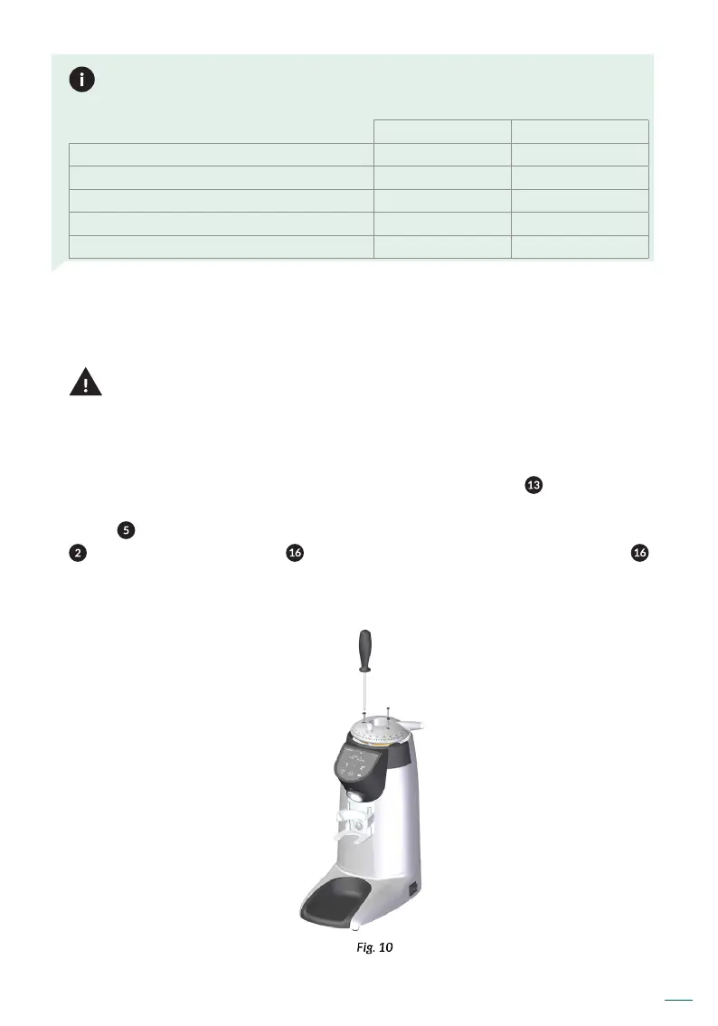recommend replacing the burrs following the quantities in next table: