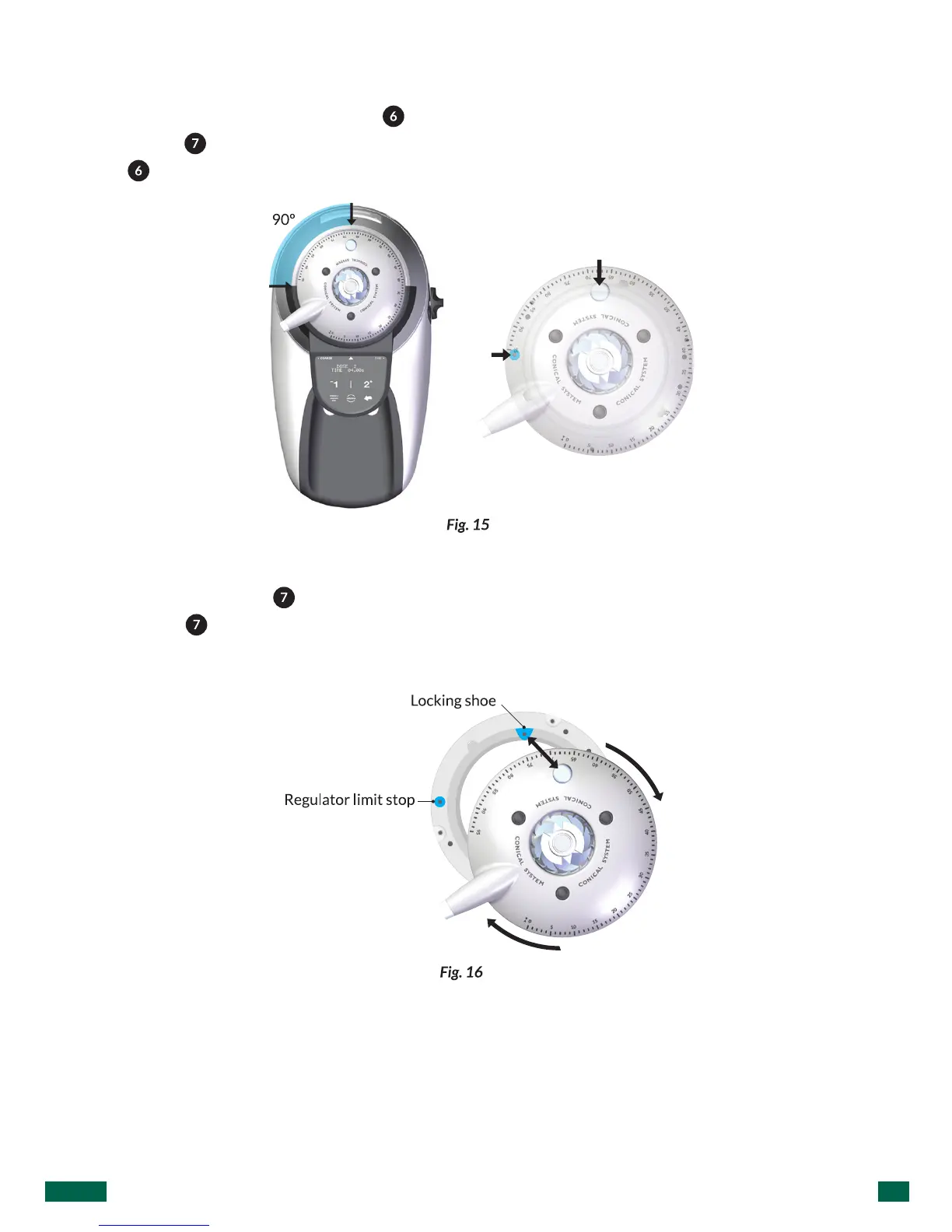 Position the regulator collar ( ) leaving about 90º between the grind point lock
