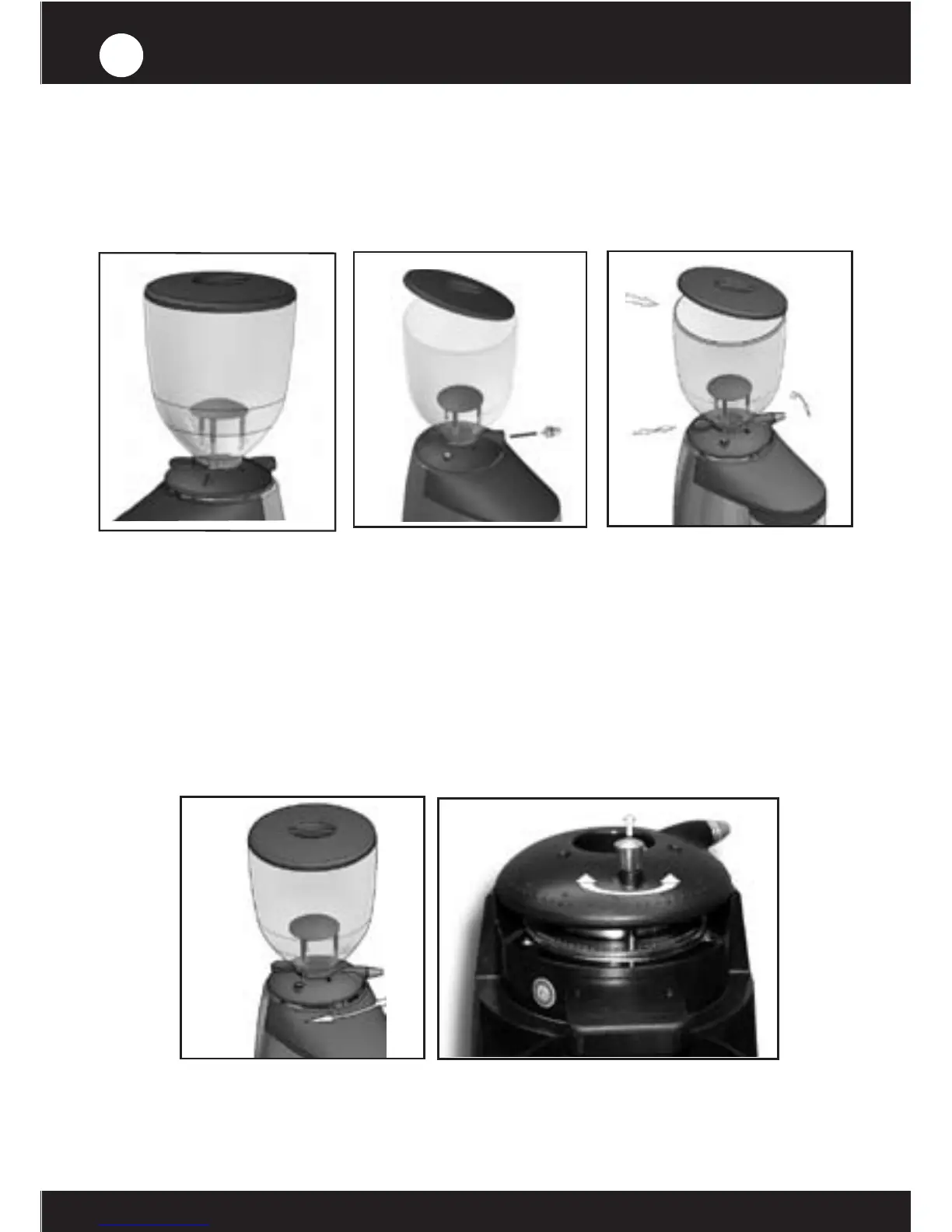 регулятор помола (6) до тех пор, пока не добьетесь нужной степени помола кофе. Вращая
