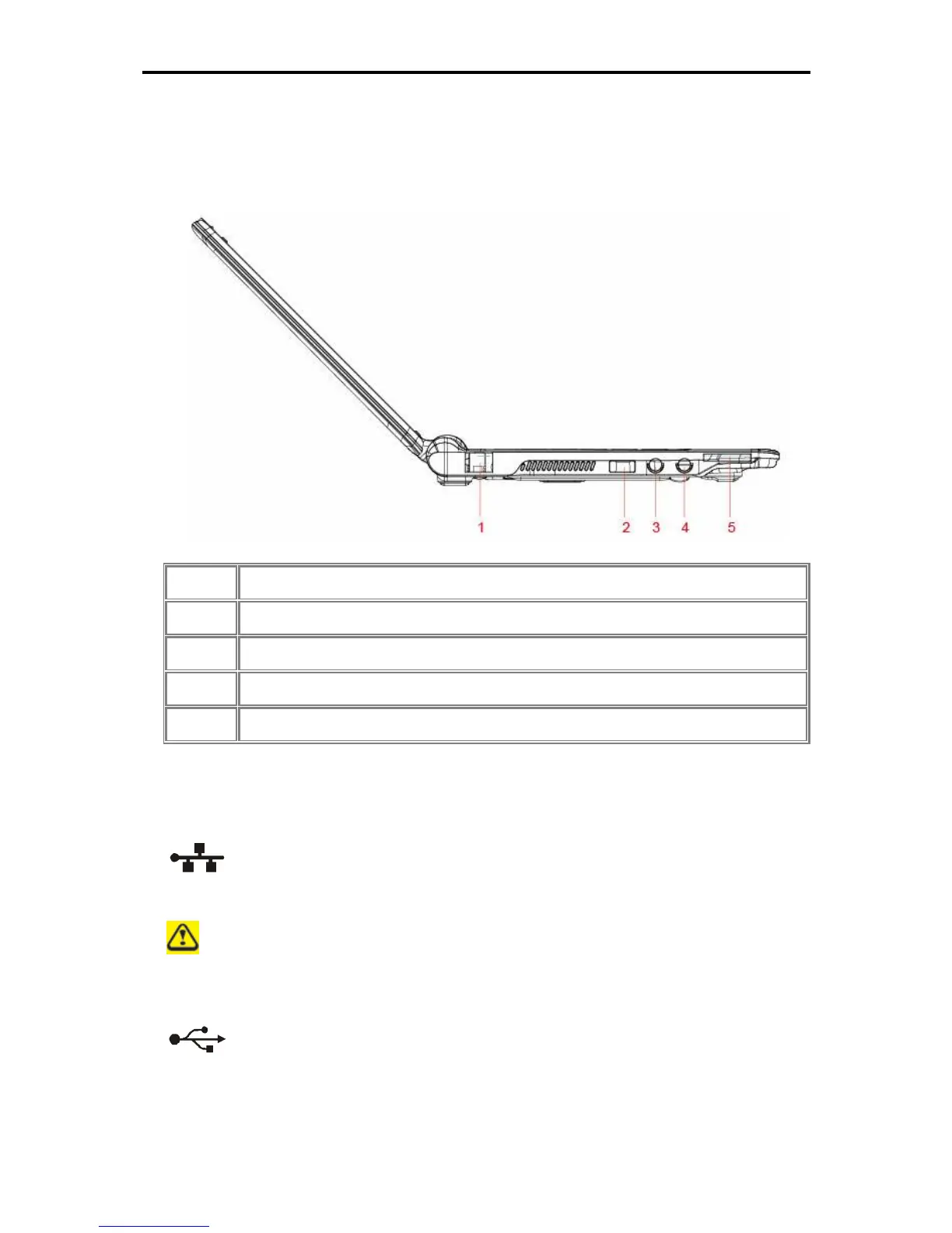 Compal Electronics NTV00 - 1.3 Left Side; 1.3.1 LAN Jack; 1.3.2 USB Ports; 1.3.3 Audio Ports(MIC and Headphone)