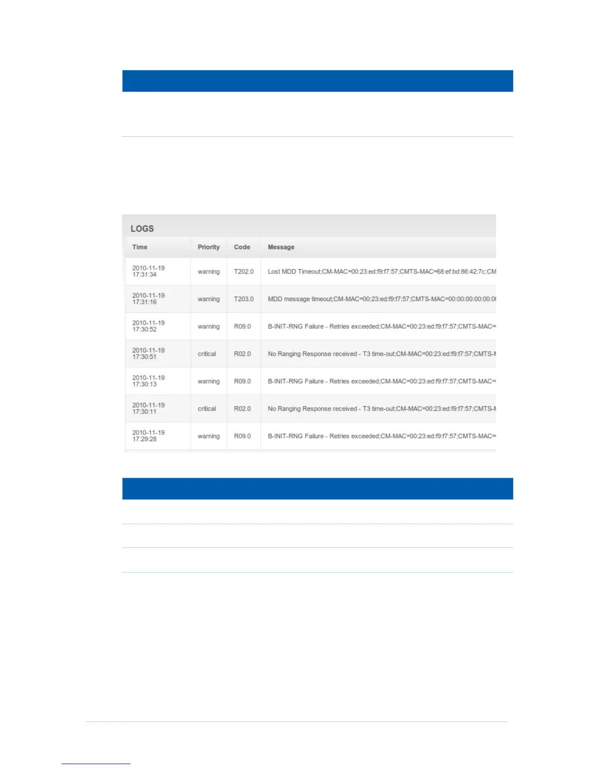 CABLE MODEM Logs Page