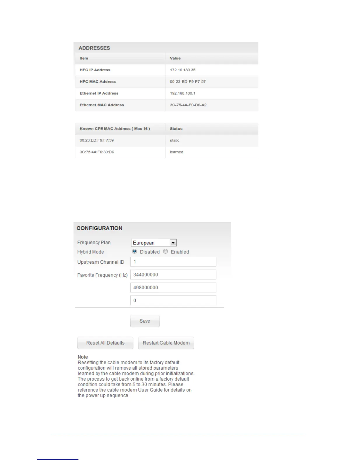 Reset All Defaults button will reset all configurations of the cable modem to factory