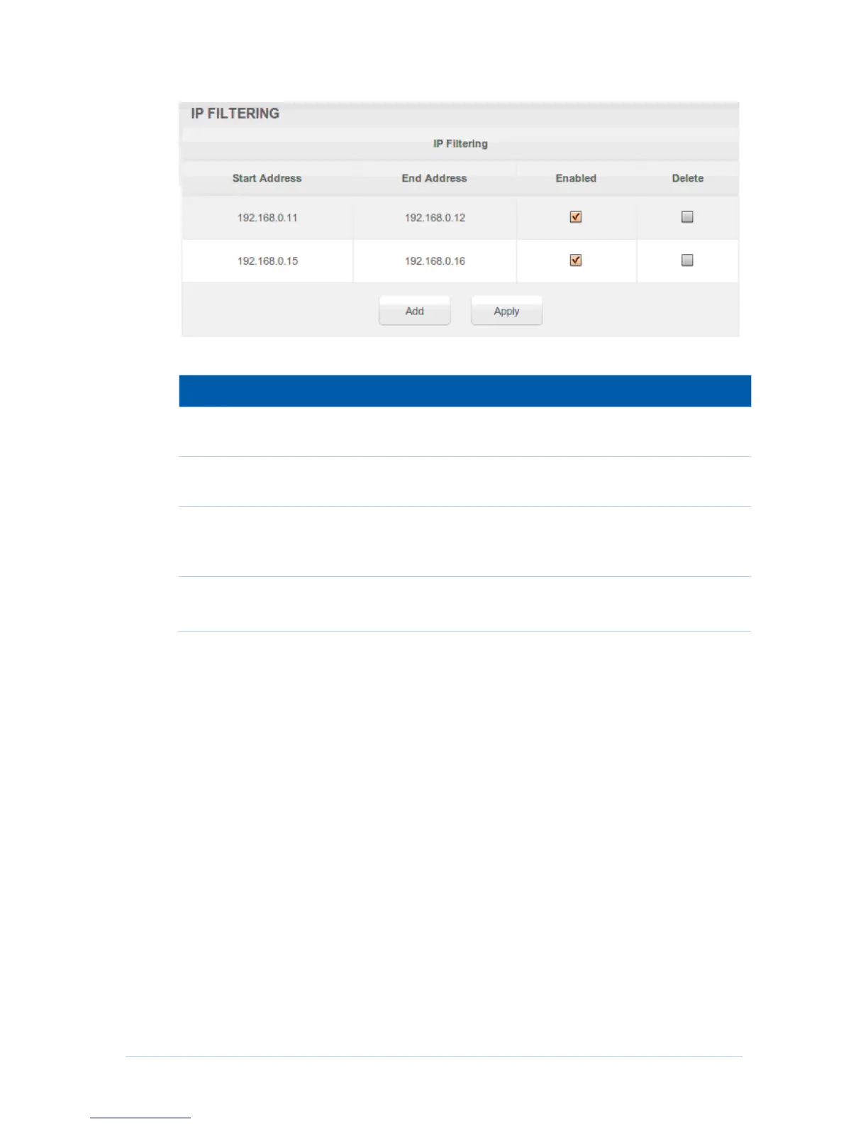 Field Descriptions for the Advanced IP Filtering Page