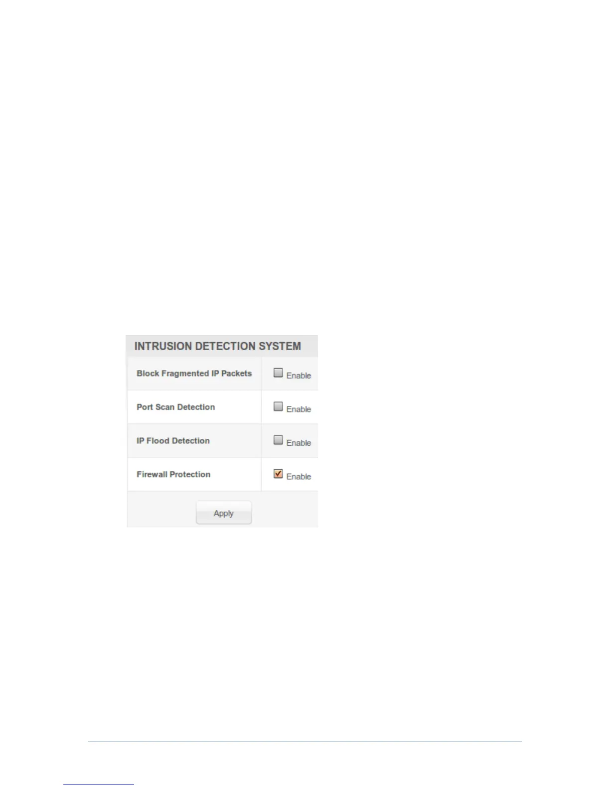 This page allows you to configure the firewall by enabling or disabling various protection