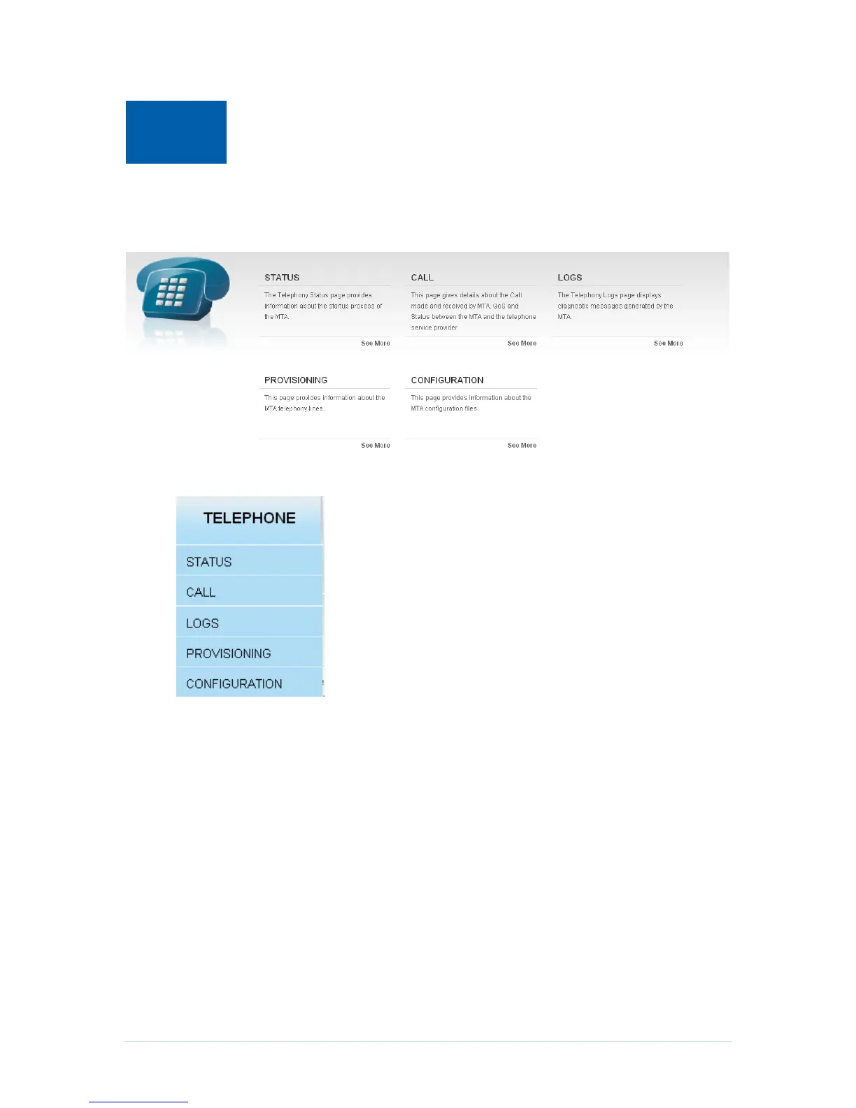 Click any TELEPHONE submenu option to view the status information for that option.