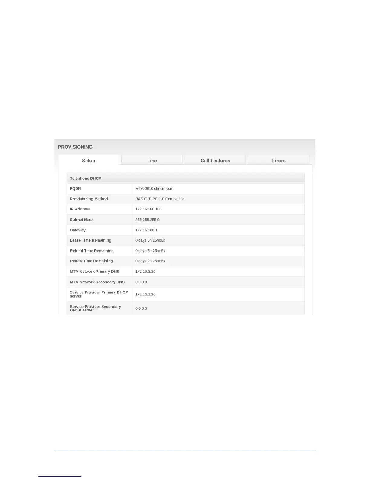 Provisioning Method, MTA IP Address, Mask and Gateway, DNS server, Configuration File,