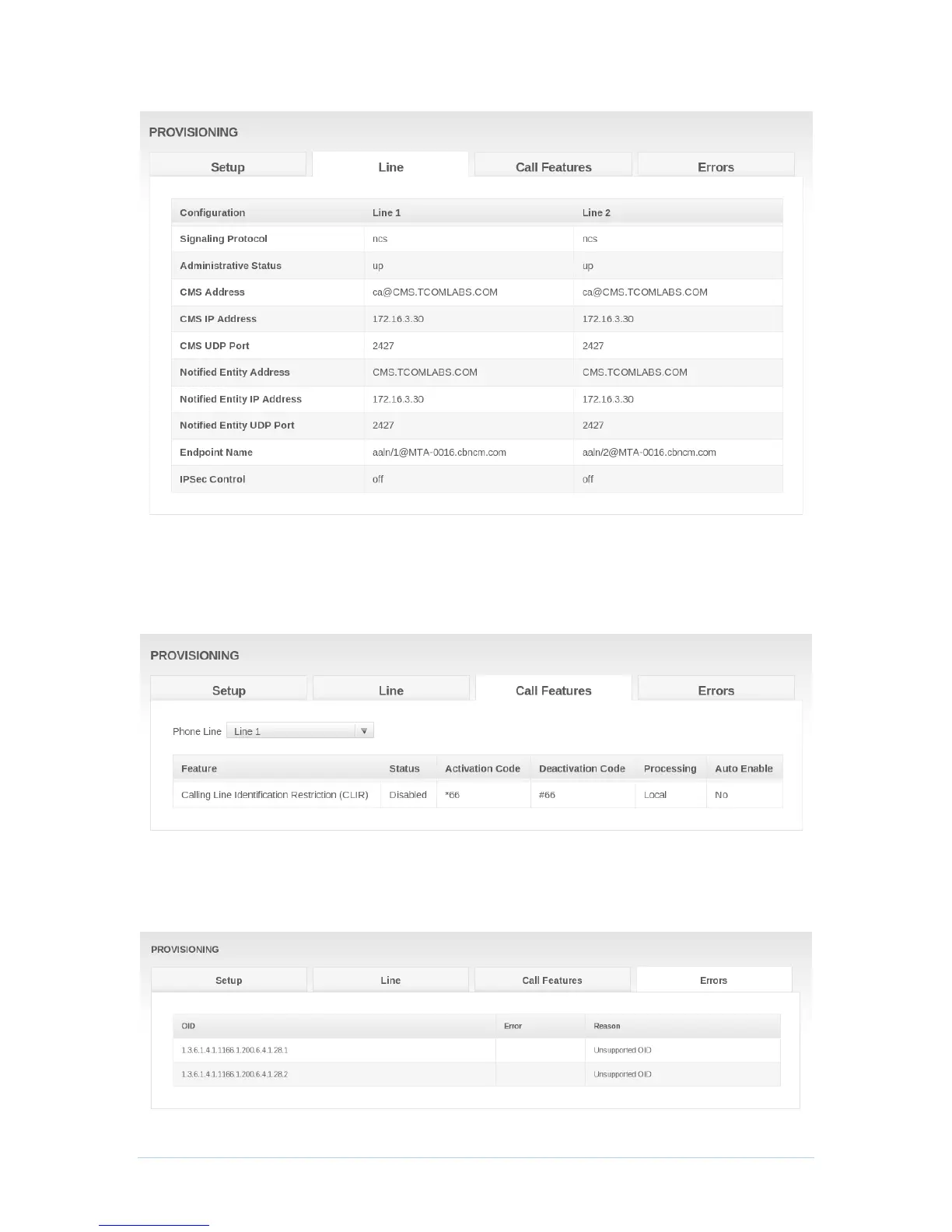If your ISP supports call features for SIP, this tab will list all call features for each phone line