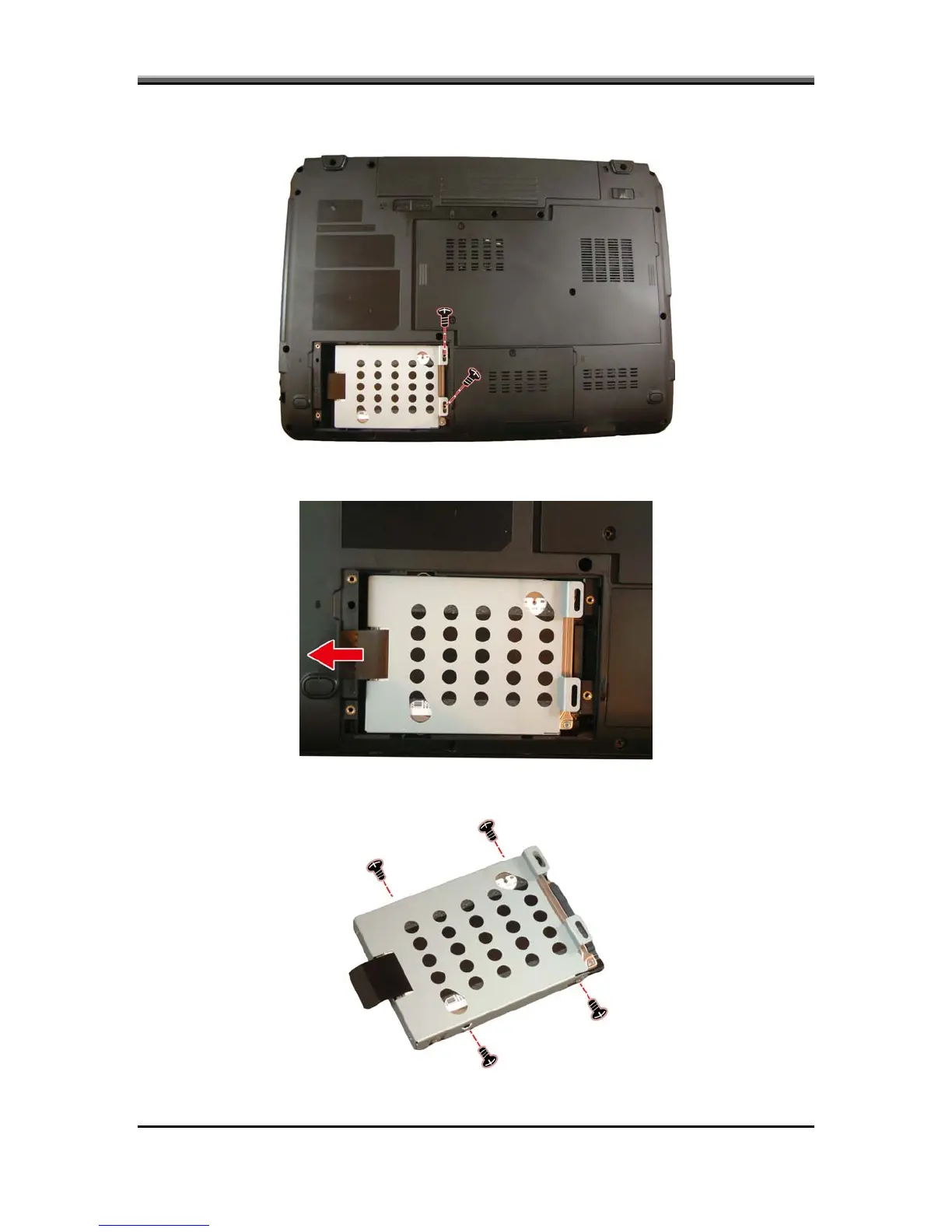 4. Remove the two screws securing the HDD module in place.