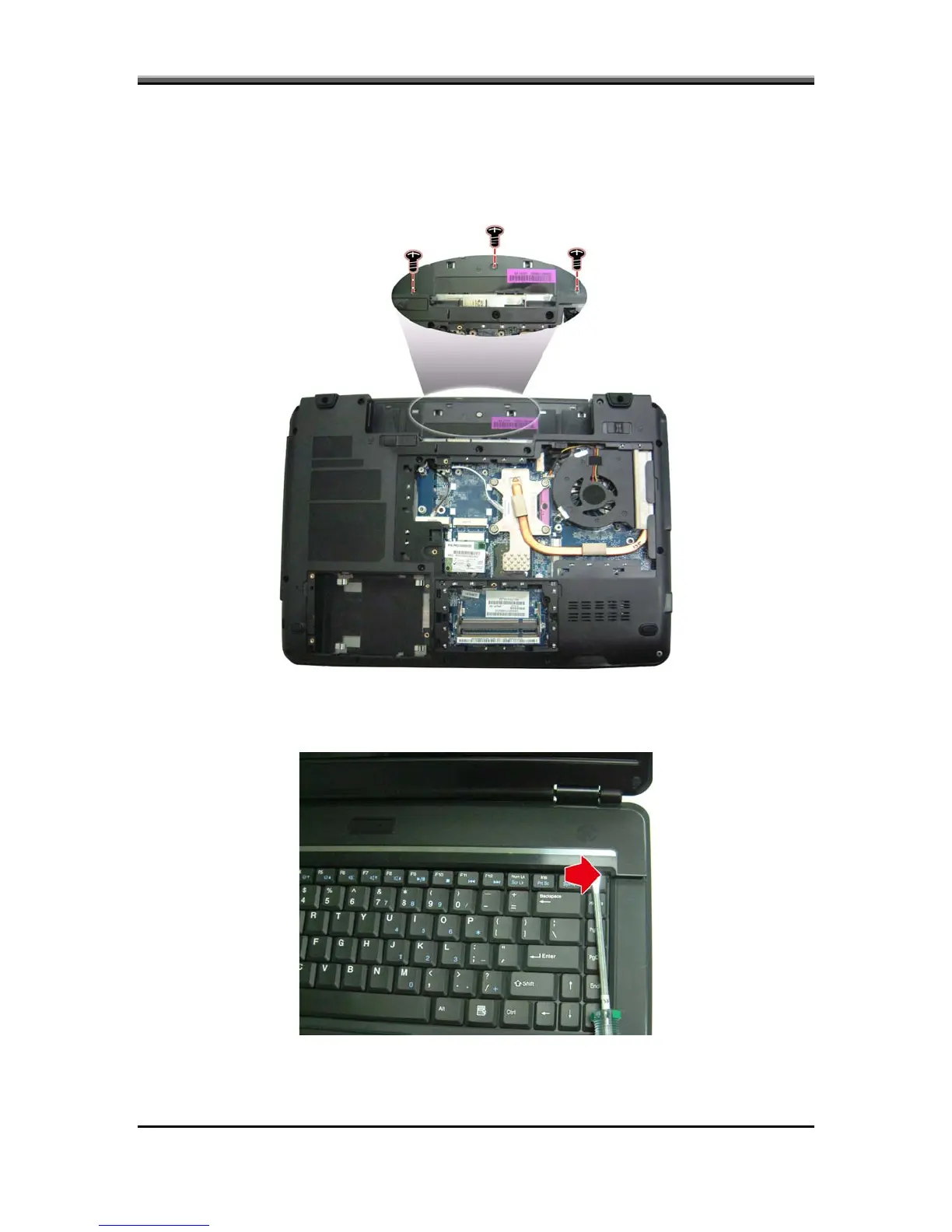 1. Turn the notebook upside down than remove three screws.